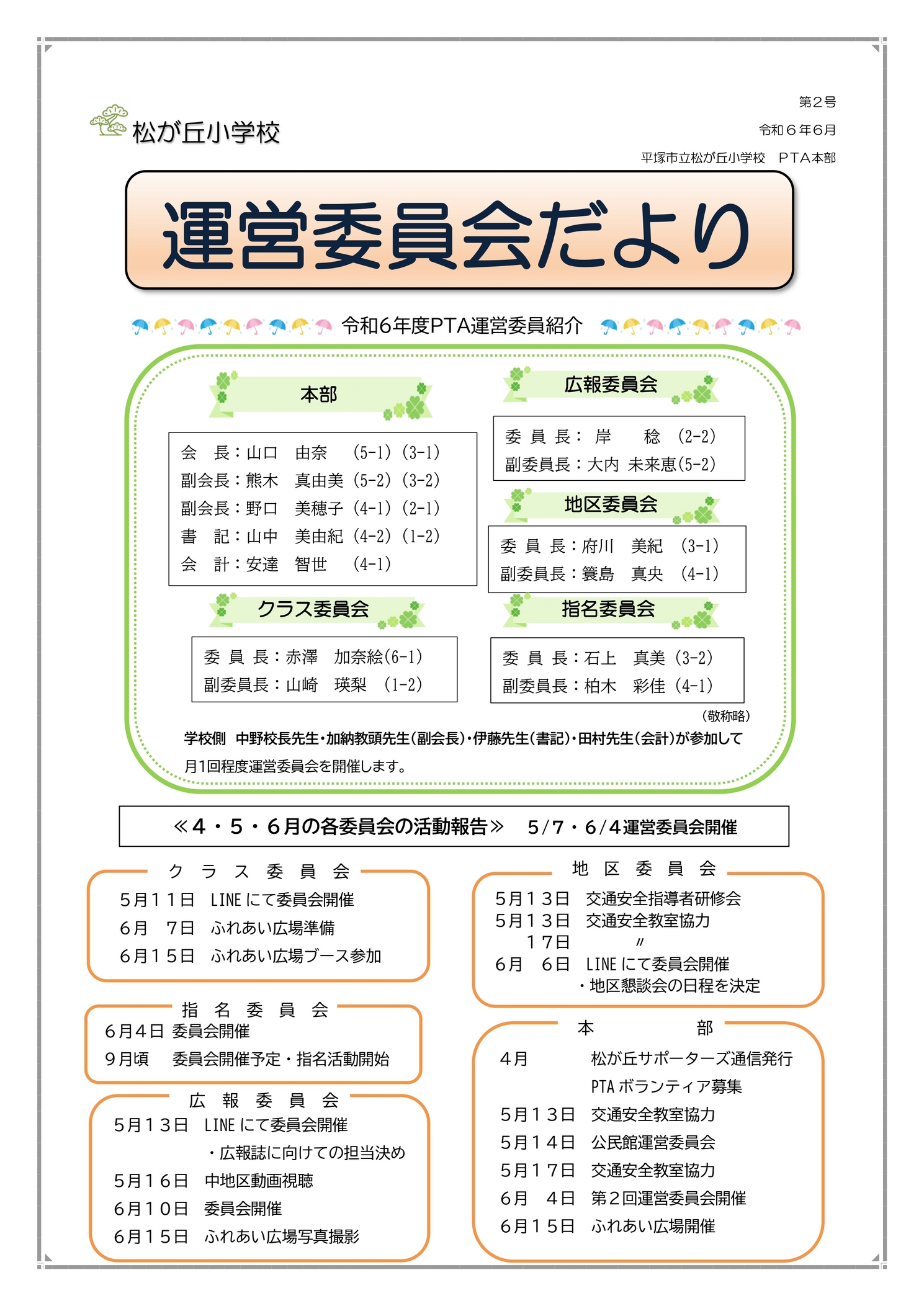 - 2026/01/28 松が丘小学校PTA運営委員会だより