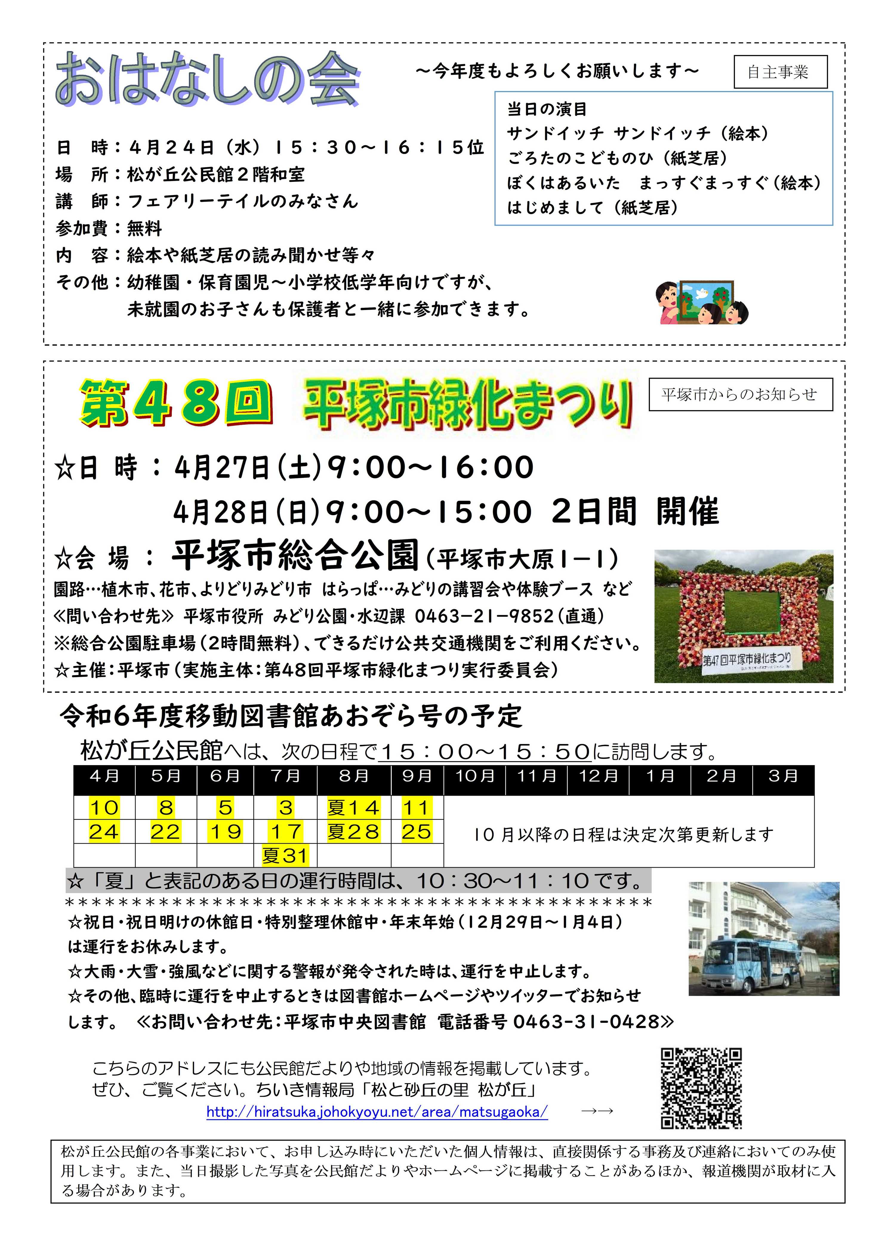 - 2026/02/15 「おはなしの会」in松が丘公民館まつりのお知らせ