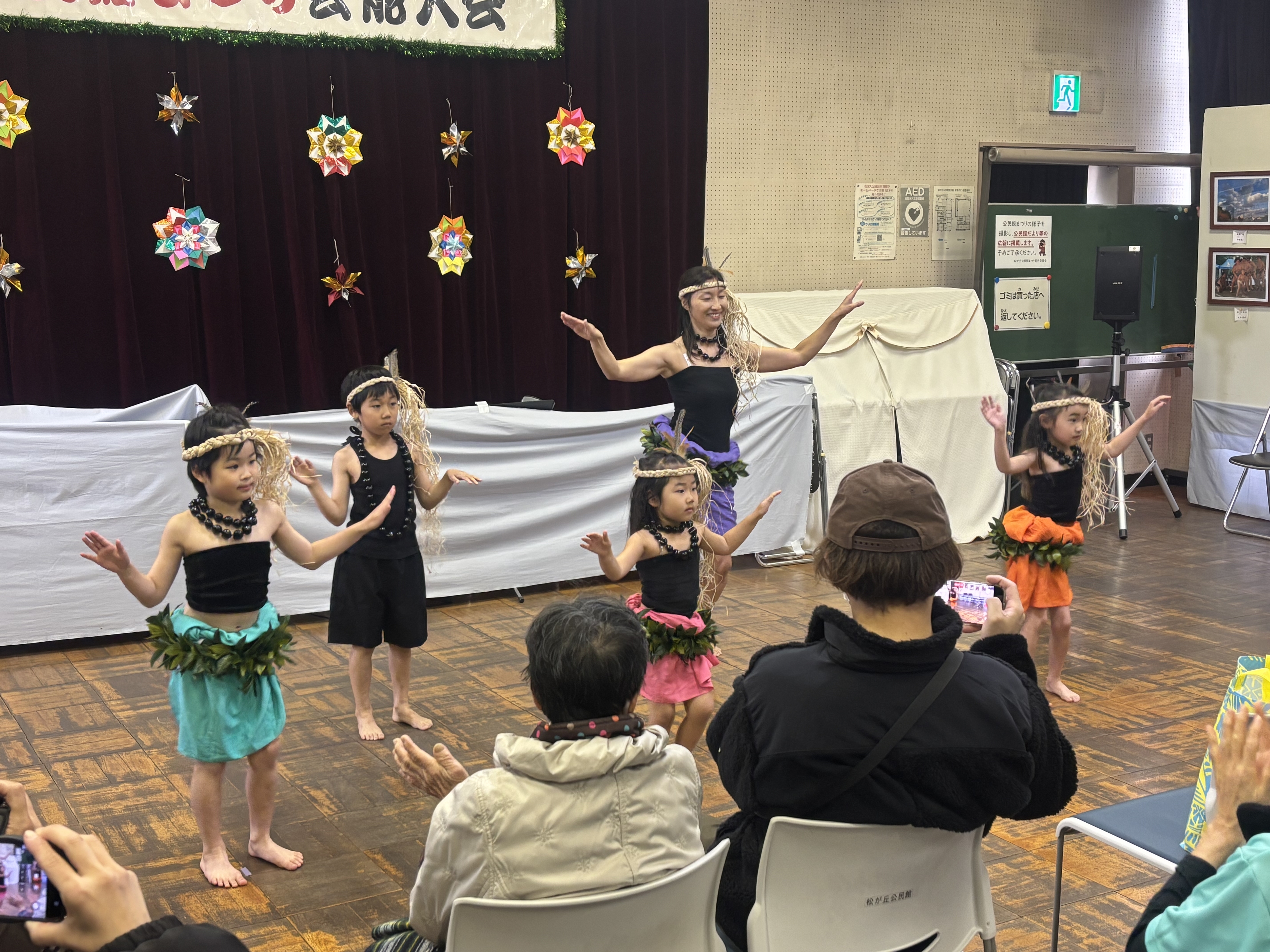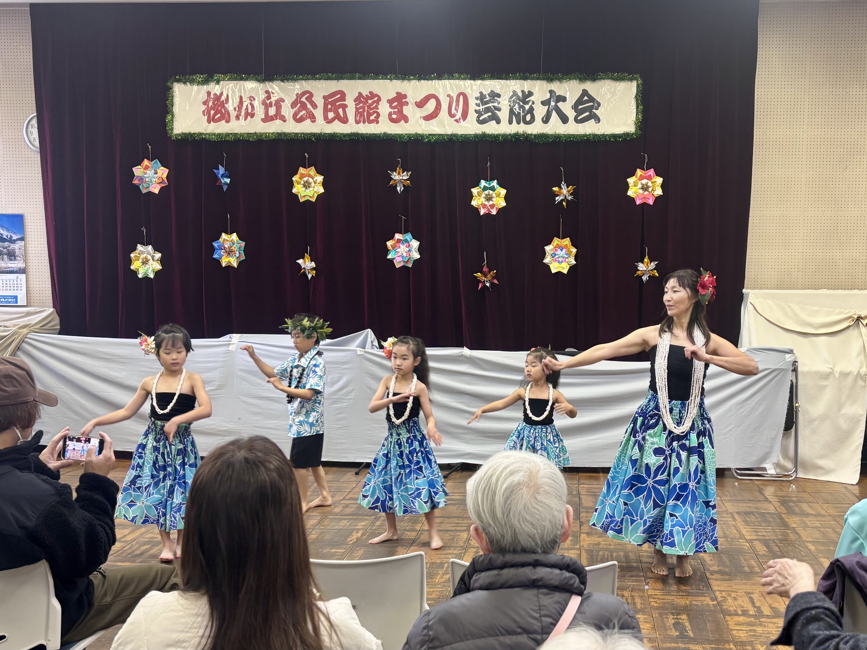 公民館まつりへ行けなかった、一部見逃してしまった…といった方のために当日の写真をアップします!少しでも当日の雰囲気を味わっていただけたら幸いです こちらは、2日目の芸能発表の様子です。 今年度は、5団体が出演してくださいました。 いずれも練習の成果が表れた素晴らしい発表の数々で、立ち見が発生するほど大人気なステージとなりました 芸能プログラムもPDF資料で添付しておりますので、各団体の発表内容やコメントが気になる方はぜひご覧ください。 出演の皆さま、誠にありがとうございました!来年のステージも楽しみにしています。 ◆ケ・カイマルフラ(松が丘)(ハワイアンフラ) 2曲目と3曲目の間には着替えを行い、雰囲気をガラリと変えて発表されていました ◆ギター軽音楽クラブ(楽曲演奏) ◆翔美会(三味線合奏) ◆いずみ会リズム体操教室(リズム体操) ◆コカリナ・サークル「さくら」(コカリナ演奏) 落合市長が来場され、芸能発表の会場にて皆さまへのご挨拶の言葉がありました。 公民館だより3月号にもまつりの写真を掲載しております。 あわせてぜひご覧ください。 ※今年度は、芸能発表の映像掲載をいたしませんので、ご了承ください。 |
