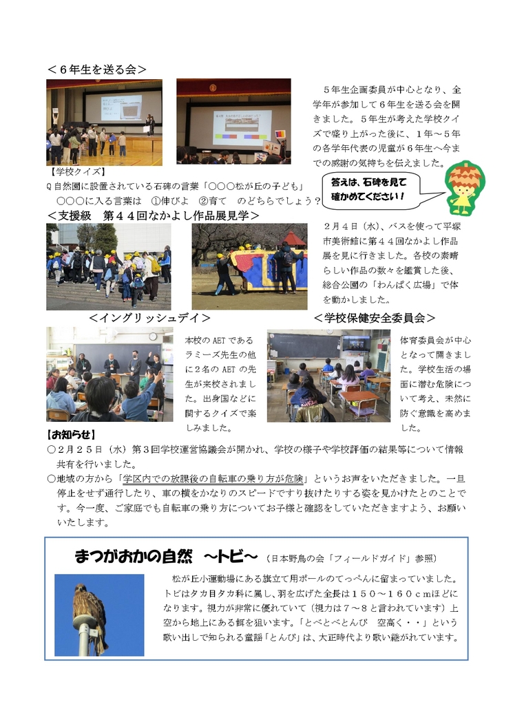 - 2026/03/06 松が丘小学校 2月学校だよりを発行しました
