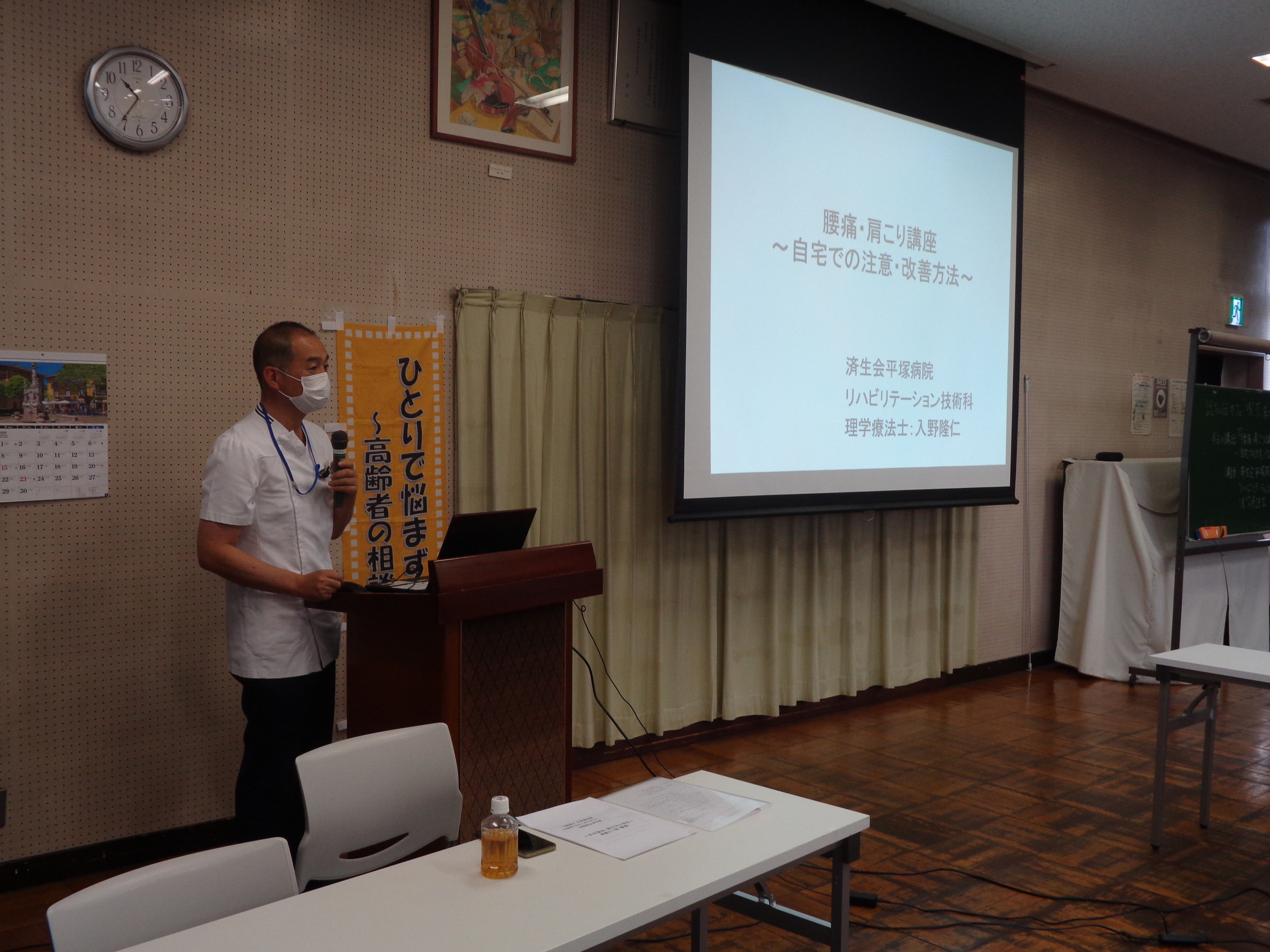 こんにちは😊 令和7年9月18日(木)松が丘公民館で認知症カフェ喫茶まつがおかを行いました。 今回のミニ講座は「腰痛・肩こり講座〜自宅での注意・改善方法〜」をテーマに済生会平塚病院リハビリテーション技術科 理学療法士入野様を講師にお招きしました。 椅子に座っている時や就寝時の正しい姿勢などわかりやすく、楽しくお話していただきました。 日々の生活での姿勢保持に注意し、ちょっとしたストレッチをすることがとても大切です。 認知症カフェ喫茶まつがおかは奇数月第3木曜日に開催しています。 どなたでも参加できます。 職員やチームオレンジメンバーさんが温かいコーヒー、紅茶、緑茶をご用意してお待ちしています(#^^#) |