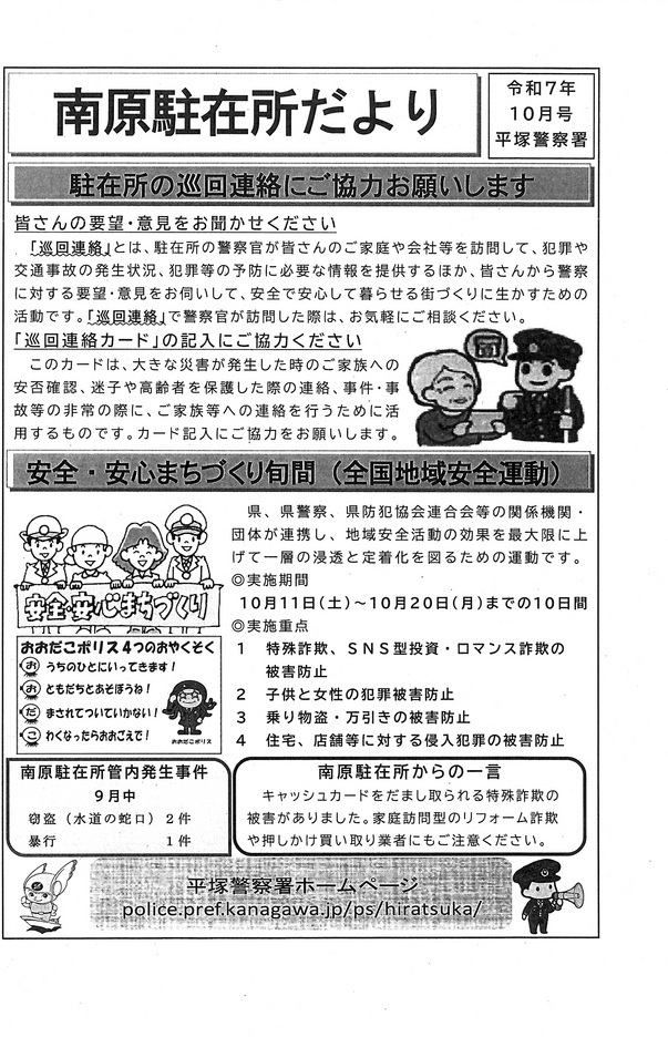 - 2025/10/01 「南原駐在所だより」令和7年10月号