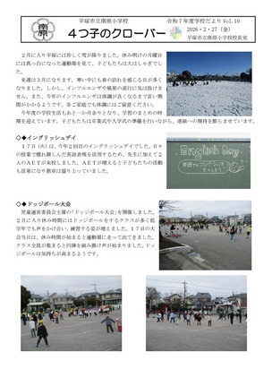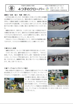 - 2025/12/01 令和7年度 地域版 南原小学校だより「4つ子のクローバーvol7」をお届けします。