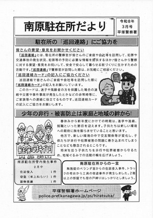- 2026/03/10 「南原駐在所だより」令和8年3月号