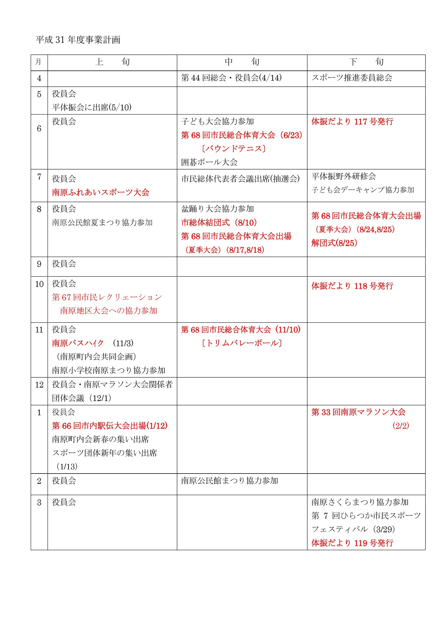 南原町内会連合会 【代表】 町内会連合会会長 【構成】 横宿自治会、東町町内会、鍛冶町町内会、向原町内会、上町町内会、土手新町町内会、ルネ自治会、の町内会(自治会)で「南原町内会連合会」を構成する 【目的】 南原地区の町内会・各種団体及び行政機関との緊密な連携を図り、地域住民の福祉の向上と町内会の円滑なる運営を促進し、良好な地域社会の発展に寄与すること。 【組織】 (1)役員:連合会長、副会長、書記、会計、会計監査を置く。 (2)本会の事業を推進するため、専門部を置く。 ア)防災部 【活動】 (1)自主事業 諸団体長研修会、南原盆おどり大会、バスハイク、 さくらまつり、防災訓練、七五三お祝い、新春の集い (2)受託事業 市民体育レクリエーション地区大会 (3)共催事業 町ぐるみ大清掃、大野地区平和の集い (4)南原自治会館の運営管理 (5)各種団体の諸活動の運営支援 |