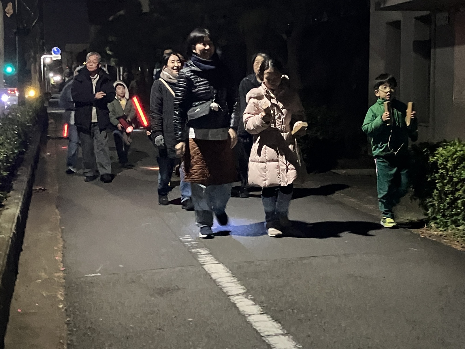 自治会役員と、お子様を含めて住民の方々も多数参加いただき、日中の暖かさがまだ少し感じられ、幸い寒さがそれほど厳しくない夜に、湘南高浜台ハイツ周辺とハイツ内を、拍子木の乾いた良い音を響かせながら廻りました。 自治会の今年を締める行事が終わり、これでゆっくりと年末年始を迎えることが出来そうです。 参加いただいた住民の皆さん、ありがとうございました。 |