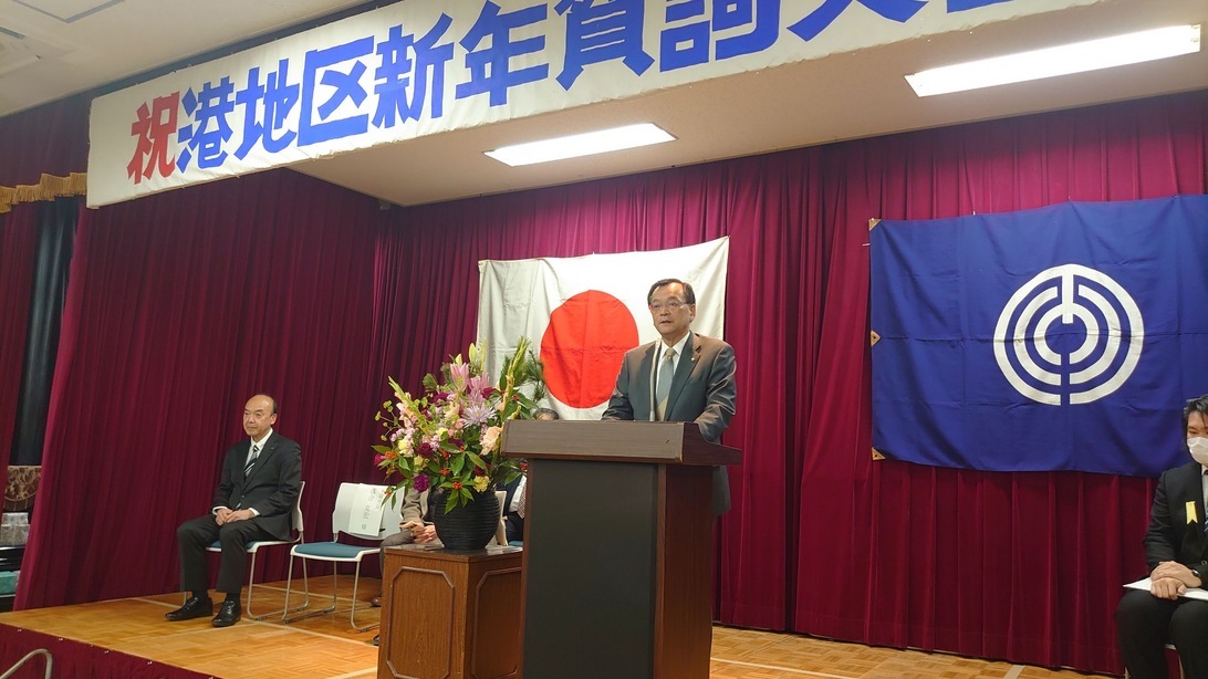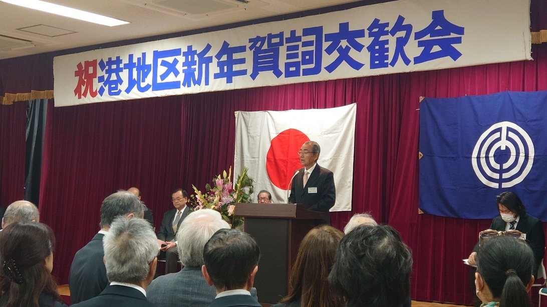 1月6日(土)17:00- 須賀公民館にて令和6年港地区新年賀詞交歓会が開催されました。 会には国務大臣の河野太郎さんをはじめ、落合市長、市議会議員の府川さん、上野さん、地域の各団体代表の方々、学校関係者、公民館関係者、自治会関係者などたくさんの方が集まり、新しい年を迎え皆さんでお祝いとご挨拶などを交わしました。 途中、自治会長によるくじ引き等もあり、和気あいあいと皆さん楽しく過ごされていました |