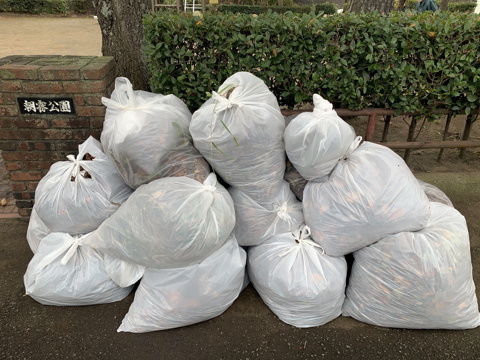 本日11月26日(日)8:00より、「有明児童公園」と「朝霧公園」を中心に秋のまちぐるみ大掃除を行いました。 寒さと小雨にもかかわらず、ちびっこからご年配の方までたくさんの人が参加してくださいました 普段から公園愛護会の方々が、お花を植えてくださったり、お掃除をしてくださったりと公園の保全に努めってくだっていますが、秋のまちぐるみ大掃除は落ち葉が多い みるみるうちにゴミ袋十数個になりました。 皆さまのご協力でとてもきれいになりました。 ご苦労様でした ( 写真は朝霧公園での掃除の様子です |