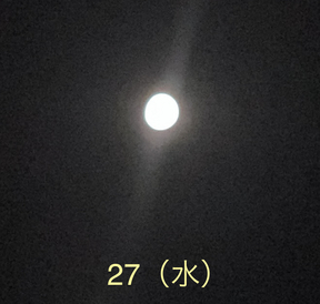 明日は、中秋の名月(十五夜)です 旧暦の8月15日の夜に見える月を「中秋の名月」と呼び、今年は明日9月29日がその日です。 今でも十五夜の月として親しまれ、ススキやお団子をお供えし、月を愛でる週間が日本には残っています。 今年の「中秋の名月」は、ちょうど満月になります いつも満月になるわけではなく、次回は7年後の2030年です!! 今週の月の変化を21時頃撮影してみました。 25日の半月からだんだんと明日の満月に近づいているのがわかりますね〜。 明日は少し雲が出る予報ですが、雲の合間で満月の「中秋の名月」を楽しんでみてください♪♪ |