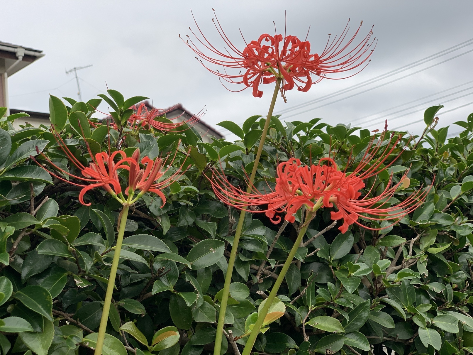 「暑さ寒さも彼岸まで」という言い慣わしの通り、暑さがいくらか和らぎ少し過ごしやすくなってきたように感じられます。今日は秋のお彼岸の中日「秋分の日」です。 この日本特有の風習「お彼岸」を用いた花があります、そう彼岸花 名前の由来は、『秋のお彼岸の頃に花を咲かせる』こと、また根に強い毒性があることから『食べると「彼岸(死)」しかない花』という説も 花茎の先に強く反り返った赤・白・黄・オレンジ・青の鮮やかな花を咲かせます。北海道や東北地方を除く日本各地で見ることができますので、色んな色の彼岸花を探してみて下さいね〜♪ 補足:札場横町では白色の彼岸花が多く咲いています。 白は札場横町、赤彼岸花は港地区で撮影しました。 | |