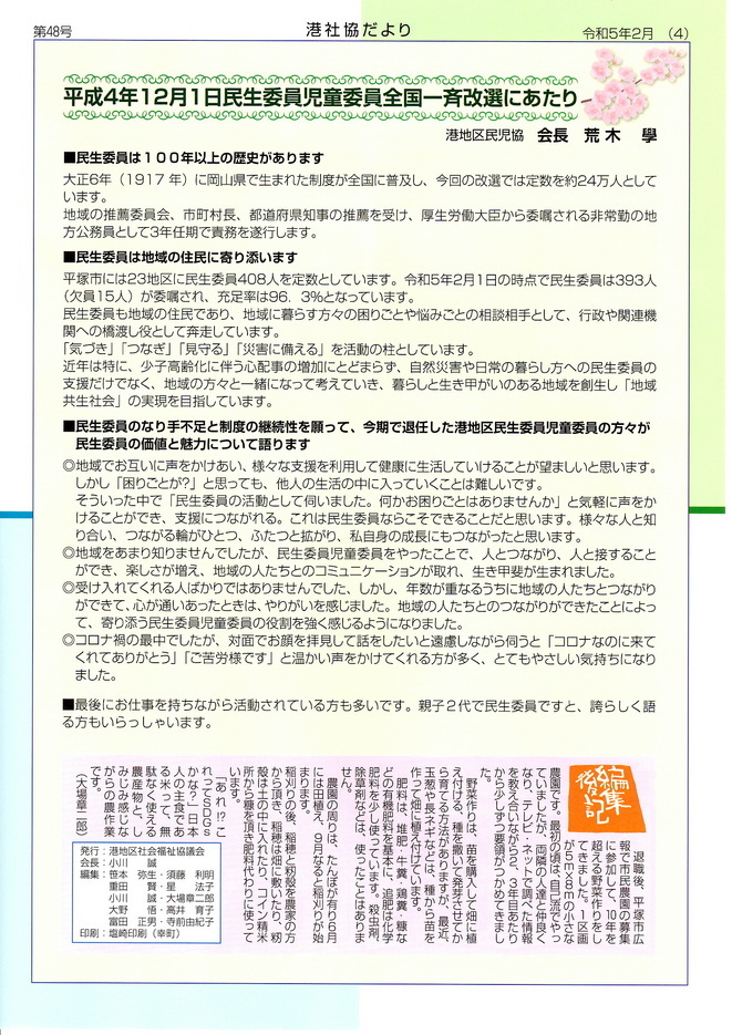 3月14日(火)、公園愛護会の皆さんがパークサイド平塚近傍の「高浜台第3公園」と「高浜台第4公園」の整備作業を実施しました。 いつもきれいにしていただいてありがとうございます。 | |