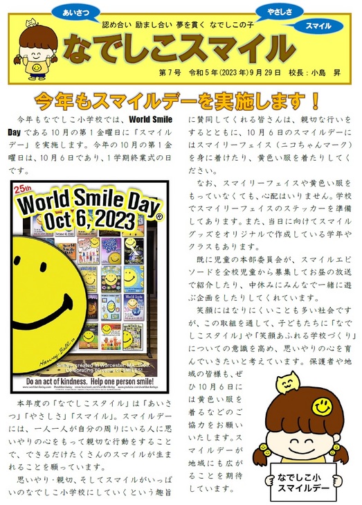 なでしこ小学校だより「なでしこスマイル」(令和5年度第7号)