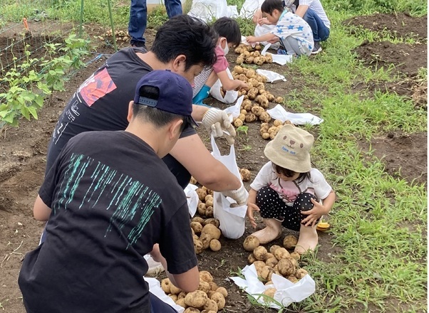 撫子原自治会は、野菜を育てる体験型農園「わくわく農園」を2022年より開園しています。農園を開園して2年目、今回は「ジャガイモ収穫祭を」を開催しました。 本来の開催日は6月11日(日)を予定していましたが台風3号の影響で雨の予報のため急遽6月10日(土)13時に変更、急な変更にもかかわらず子育て中の世帯が多く、23人が参加し「ジャガイモ掘り」を開始しました。 子どもたちは泥だらけになり大きなスコップに振り回されながら、ジャガイモを1株1株掘り起こし芋の数・大きさを確かめていました。特に大きな芋があった場合、「自分が掘ったよ」と大きな歓声を上げていました。 子どもたちと一緒に参加したお母さん・お父さんたちも芋が地面から掘り出されるたびに子どもと一緒に歓んでいるのが印象的でした。今日に限って子どもたちは土に服や手が汚れても親から注意もされず芋を夢中になって掘っていました。 掘り終わったジャガイモは一か所に集め参加世帯及び都合で参加できなかった世帯分に分け、各々満足そうに持ち帰りました。 「担当:U」「確認:F」 |
