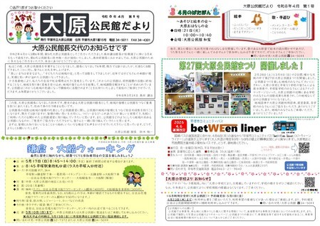 - 2026/04/01 中原公民館だより・大原公民館だより令和8年4月号を発行しました。