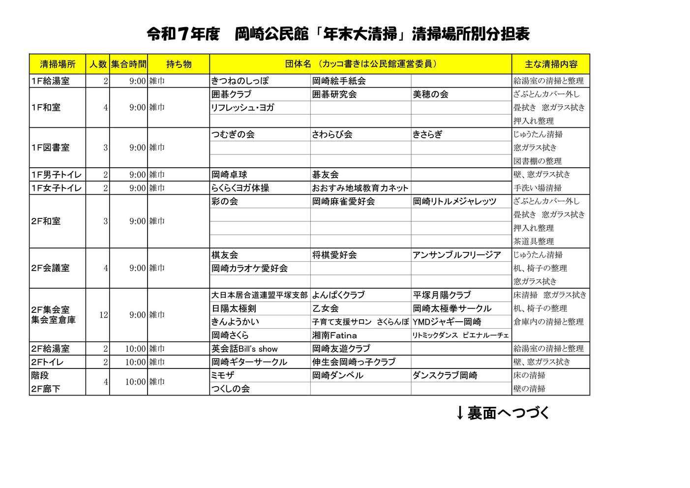 - 2025/11/13 【公民館利用団体宛て】令和7年度岡崎公民館「年末大清掃」への参加について(お願い)