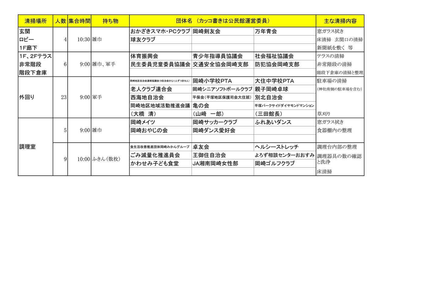 【公民館利用団体宛て】令和7年度岡崎公民館「年末大清掃」への参加について(お願い)