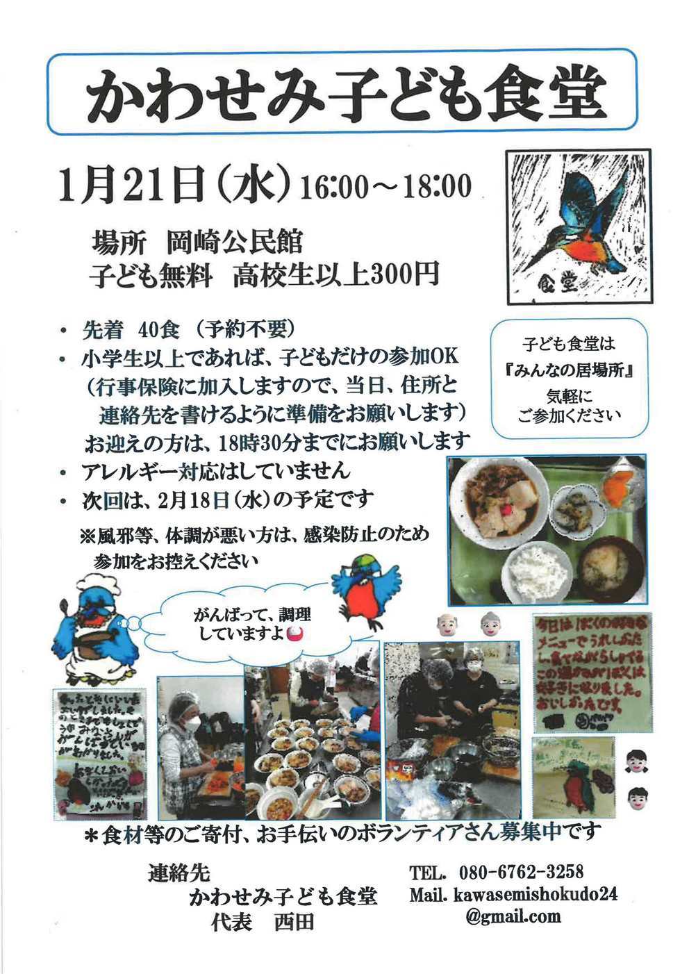 本日、今年度9回目の「かわせみ子ども食堂」が16時から開催されます。