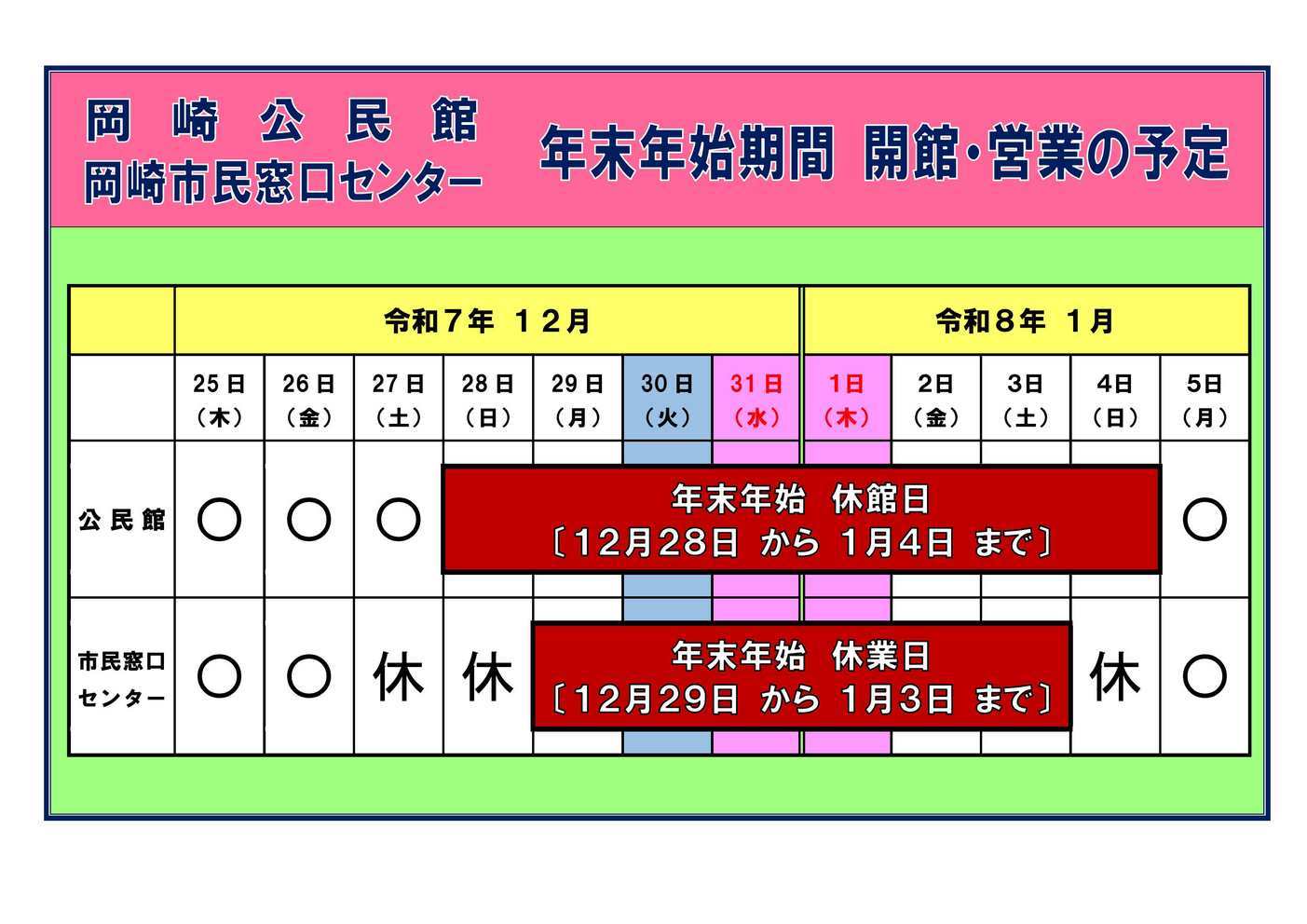 - 2025/12/18 岡崎公民館 年末年始の開館状況