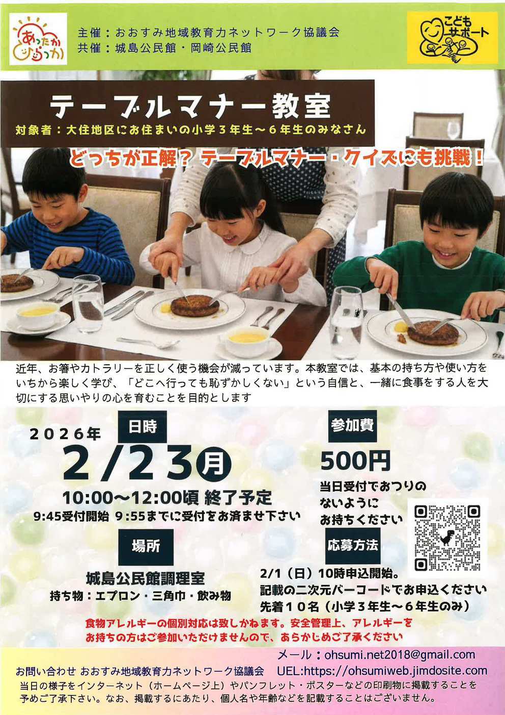 - 2026/02/03 【おおすみ地域教育力ネットワーク協議会】テーブルマナー教室