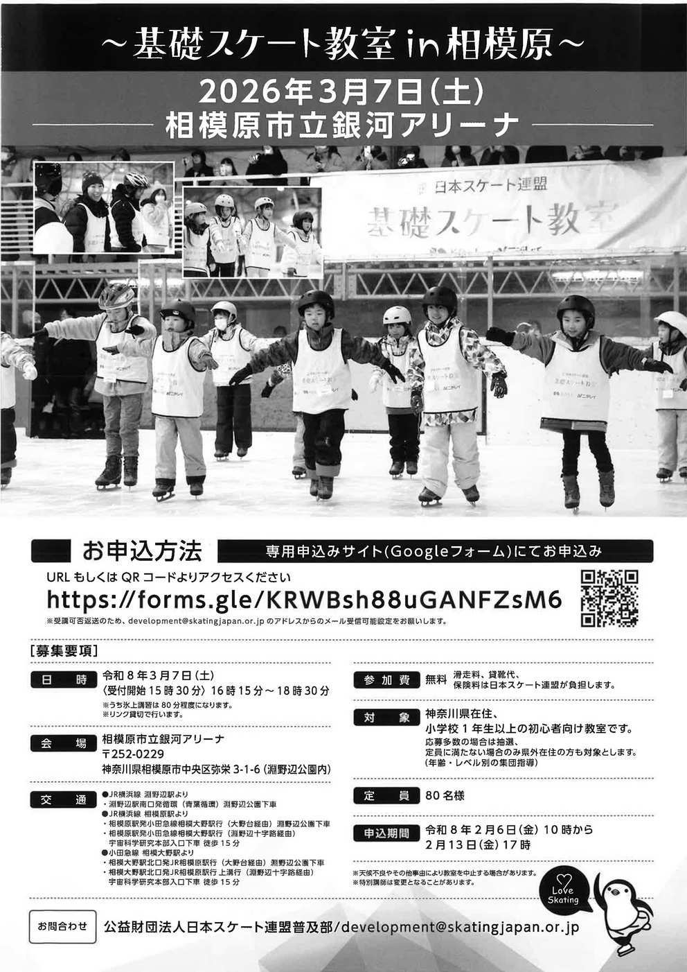 【日本スケート連盟】基礎スケート教室in相模原 参加者募集!