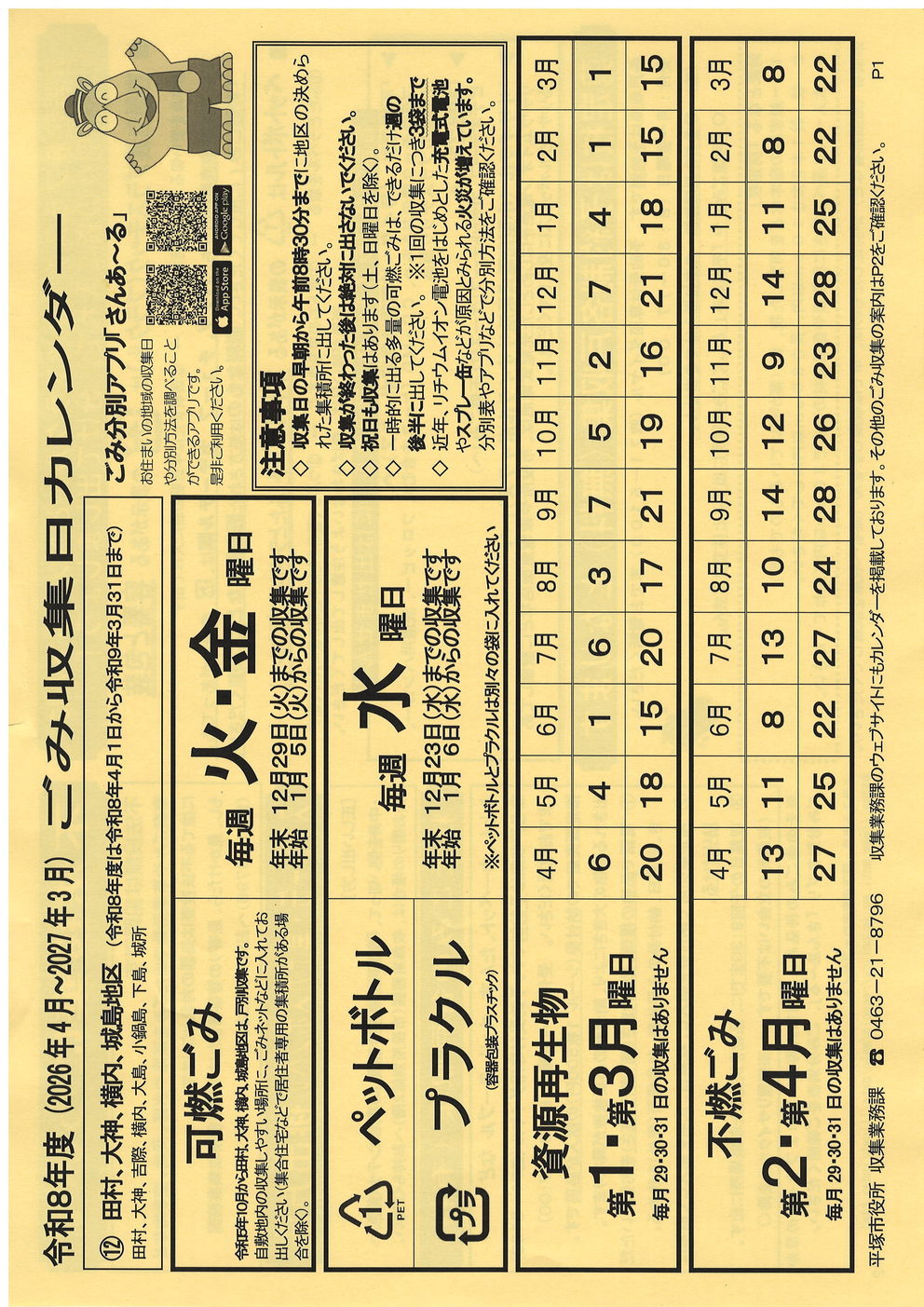 - 2026/02/25 令和8年度(2026年4月〜2027年3月) ごみ収集日カレンダー