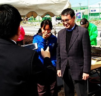 の公民館まつりです。 館内の大ホールではカラオケ大会、 各部屋、通路には各団体の活動の展示や 幼児園、小学生の作品がたくさん! 模擬店には多くの人が行列を作りました。 昼前、河野太郎大臣がお見えになり、 公民館まつりの様子を見た後、焼き鳥の 試食をして、記念撮影にも応じて頂き ました。 明日は、ミニSLが来て、模擬店の数も 増えて益々盛大ですよ! 皆さん親子そろっておいで下さい。 広報担当 |