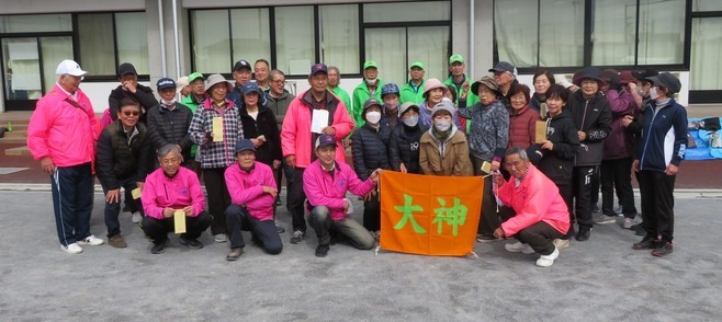 本日グランドゴルフの大会を行いました。 場所は相模小学校のグランドをお借りしました。 多くの皆さんに参加頂き、和気あいあいで 競技を楽しみ、1,2,3位の他、5,10・・ のとび賞、ブービー賞、ホイールインワン賞 等たくさんの方が賞品をゲット。 笑顔あふれる大会でした。 次回も多くの皆さんのご参加をお願いします。 広報担当 | ||