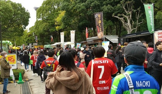 J1リーグの湘南ベルマーレと 名古屋グランパスの試合がありました。 試合開始は14時でしたが、公園は 朝から両チームの応援団で大変な にぎわいでした。店がたくさん並び 10時前から駐車場は満杯状態でした。 NHKのTVの中継がありました。 結果は2−1でベルマーレの勝利でした。 広報担当 |
