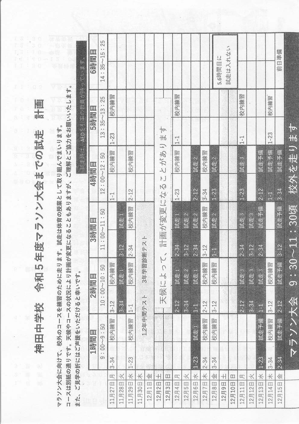 12月16日(土)神田中学校のマラソン
