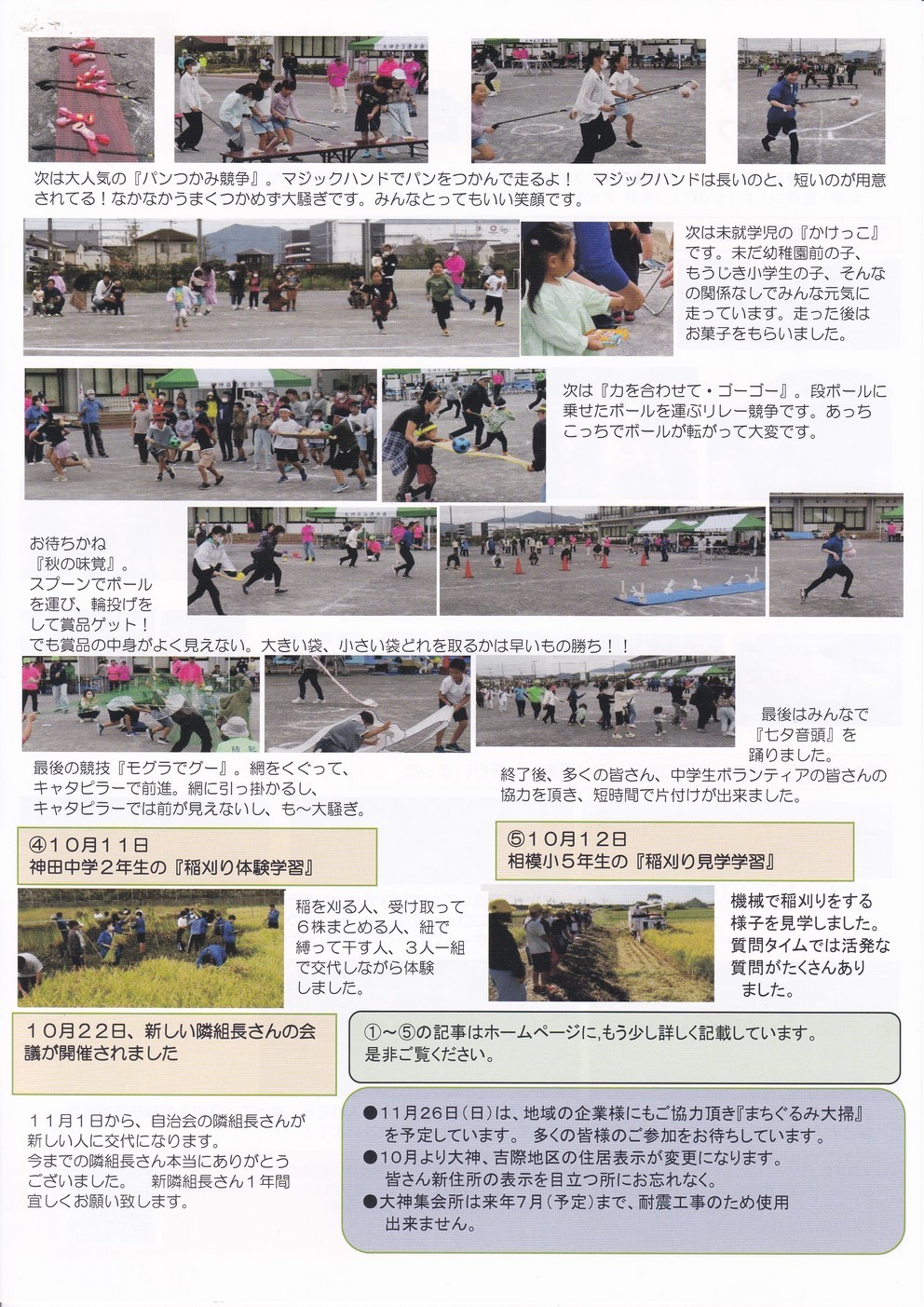 10月30日にはちびっこ広場の草刈り、 又今日(11月2日)は、公民館南側の 4号公園の草刈りを自治会役員の方々が 行いました。 ありがとうございました。 上2枚の写真がちびっこ広場、下2枚が 4号公園の草刈り後の様子です。 広報担当 |