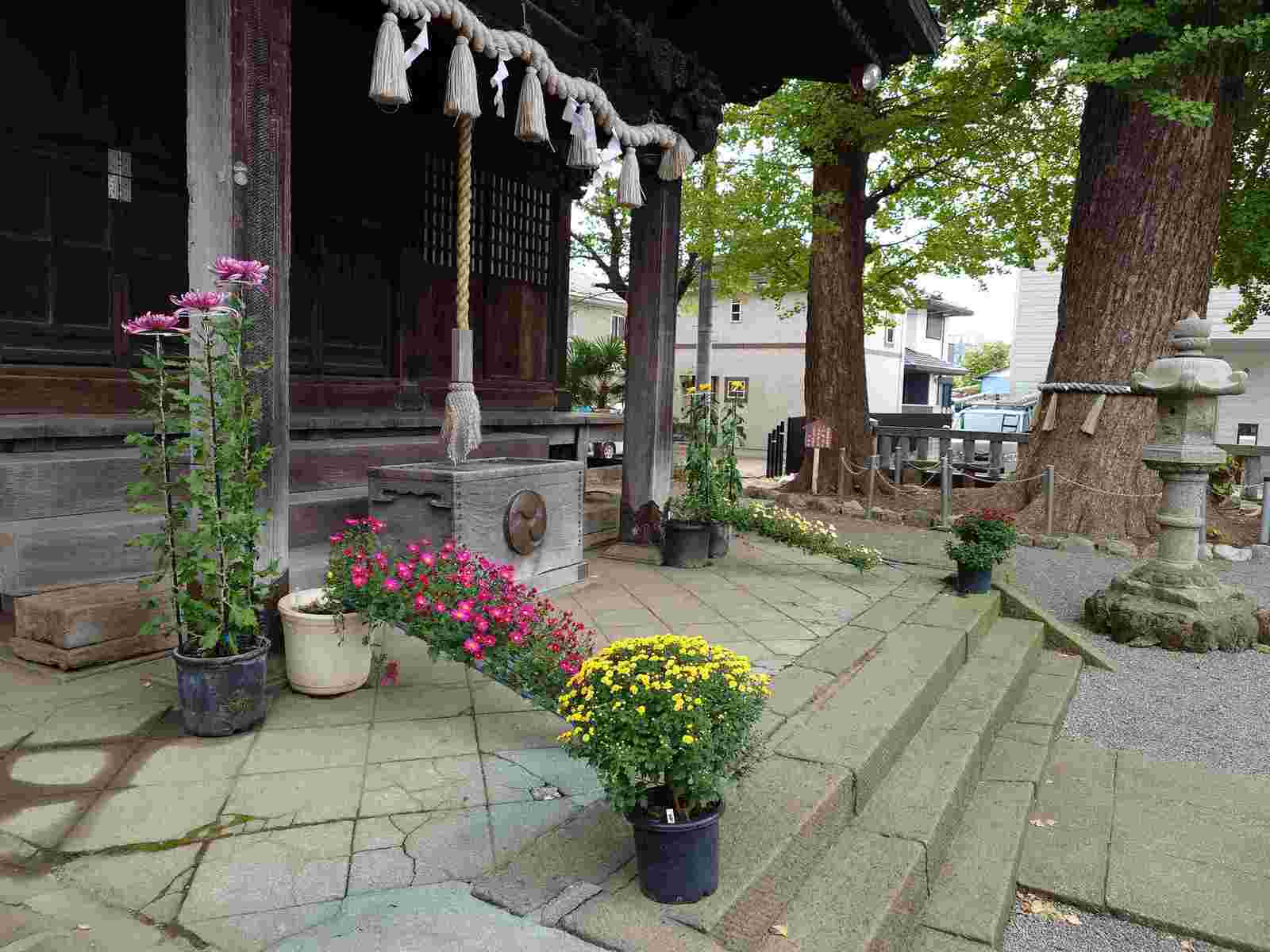 11月23日に開催する、寄木神社神事「新嘗祭」を華やかにするために11月4日から、拝殿前に菊の鉢植え6鉢展示しています。