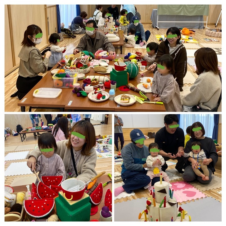 11月二回目の、公民館とのコラボ企画で「おはなしワニーズさん」をお招きして、おはなし会と手作りおもちゃで遊ぼう 手作りの絵本や布おもちゃは、どれもクオリティが高く素晴らしい作品ばかりで、ママたちも感動していました 時間があっという間に経ってしまい、もっと遊びたかったね〜 11月12月のお誕生会は、大きなケーキの前でおめでとうと祝ってもらって、うれしかったですね 次回のるんるんは、 サンタさんもプレゼントを持ってきてくれますよ〜🎅 お友達を誘って遊びに来てくださいね |