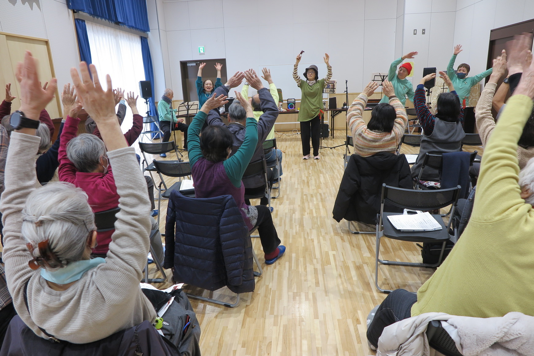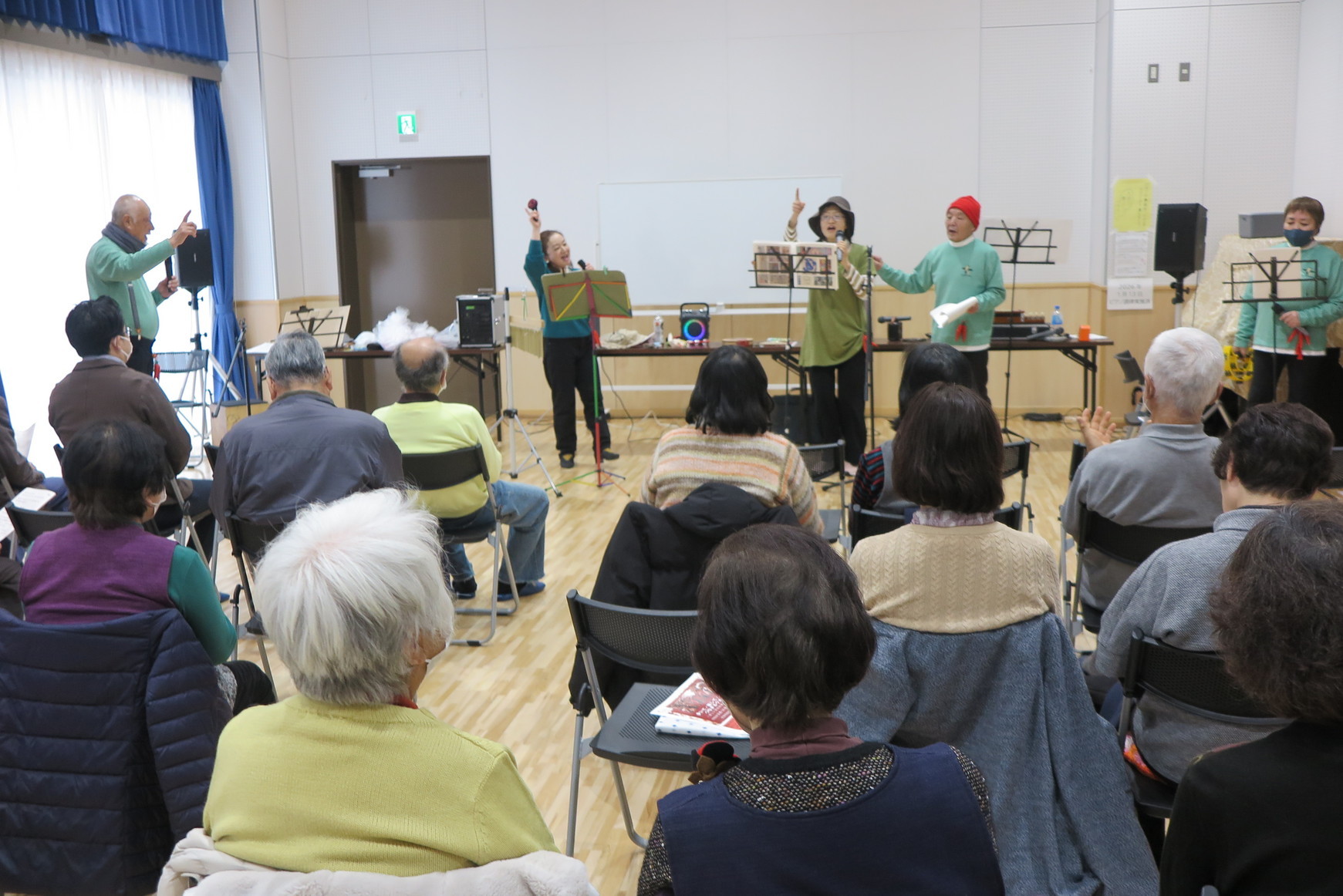 小玉四之宮地区社協副会長の開会の挨拶の後、高齢者よろず相談センター倉田会の石井さんより、平塚市高齢福祉課主催(湘南ベルマーレ協力)のイベント、 “歩いて・話して・つながるウオーク”〜新しい認知症観を知ろう〜の案内がありました。 その後、今回で5度目のご来演となる“洋ちゃんととんがらし”(今回は男性2名、女性3名で構成のゴスペルバンド)さんにより、ゴスペルや洋曲の合唱や演歌・唱歌指導、ダンス、手足を使った体操、食物関連のクイズ等盛りだくさんなイベントが披露されました。ゴスペル4曲、洋曲は耳なじみのプレスリーが歌った“好きにならずにいられない、Can’t Help Falling in Love”など3曲の他、みんなが知っているな‟川の流れのように”、‟春の小川”、“花”など8曲の歌詞が用意され、皆で楽しく合唱し、“花”の合唱時には、事前に用意された桜の花びらを吹雪のようにまき散らすなどの演出が用意され、又最後にゴスペルの名曲“驚くばかりの神の恵み”(Amazing Grace)を持ってくるなど、巧みな配慮・構成に感心させられました。 次回ふれあいサロンは令和8年3月16日(月)13時から公民館にて、『脳トレ他』の予定です。大勢の皆様のご来場をお待ち申し上げております。 |