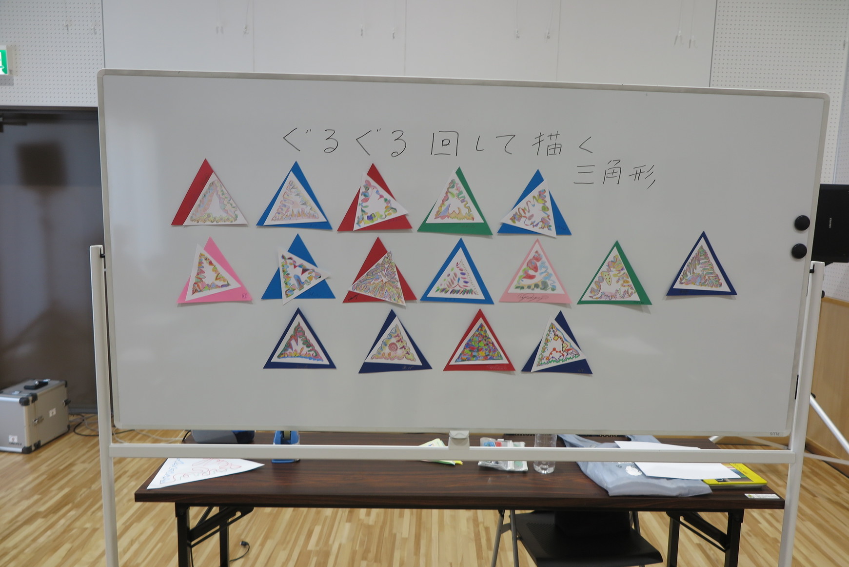 新任の南保会長の挨拶後、平塚よろず相談センター倉田会男性ケアマネージャー、宍野浩樹さんより、初登場につき自己紹介、その後本日の絵画教室での細かな指の動き慣らしの為の指の運動を10分間ほどご指導いただきました。 その後本日のメインイベント、岡屋久美子先生による“わくわくアート”(美術教室)の開演です。今回は、約15p正三角形の白紙の用紙に、各自が三辺に沿って不定形の波線を書きます。その後その線と重ねたり、はみ出したりしたり任意の図形が描かれれるようにして曲線を追加して空間を造ります。そしてそのできた隙間に各自好みの色と感覚で二重三重塗り、多重塗りをして図形を完成します。その後その完成品を一回り大きな三角形の台紙に貼って、全てをホワイトボードに貼りだし、参加者一人一人が順番に講評し合い、それに先生が追加で感想を述べるという形で、全員の作品を評価していただきました。相当な傑作も生まれたようでした。 次回のふれあいサロンは、5月18日(月)13時〜15時公民館にて田邊誠一講師による『折り紙教室』を予定しております。皆様ふるって御参加下さい。 |