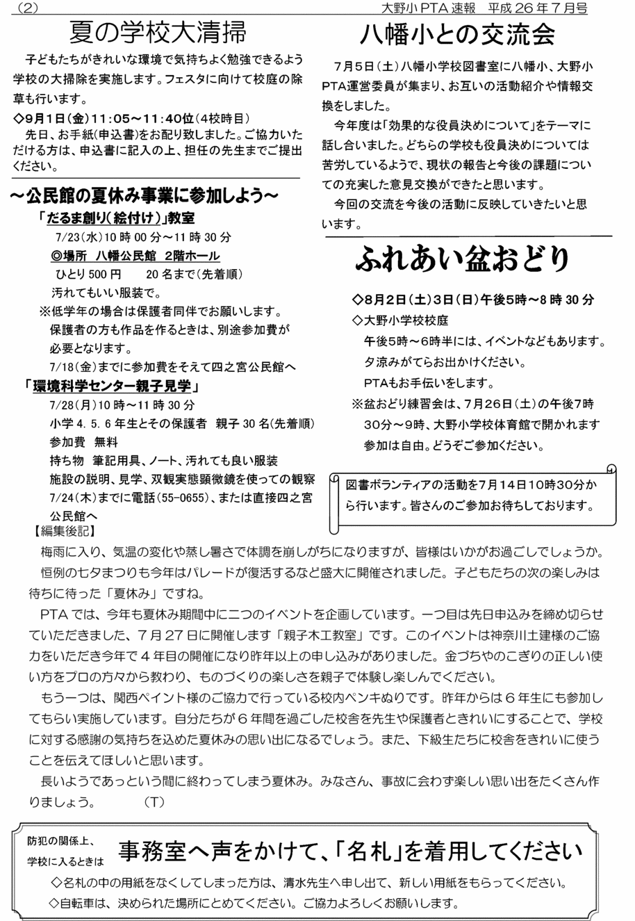 PTA速報 No.3 平成26年7月8日 大野小学校PTA本部発行