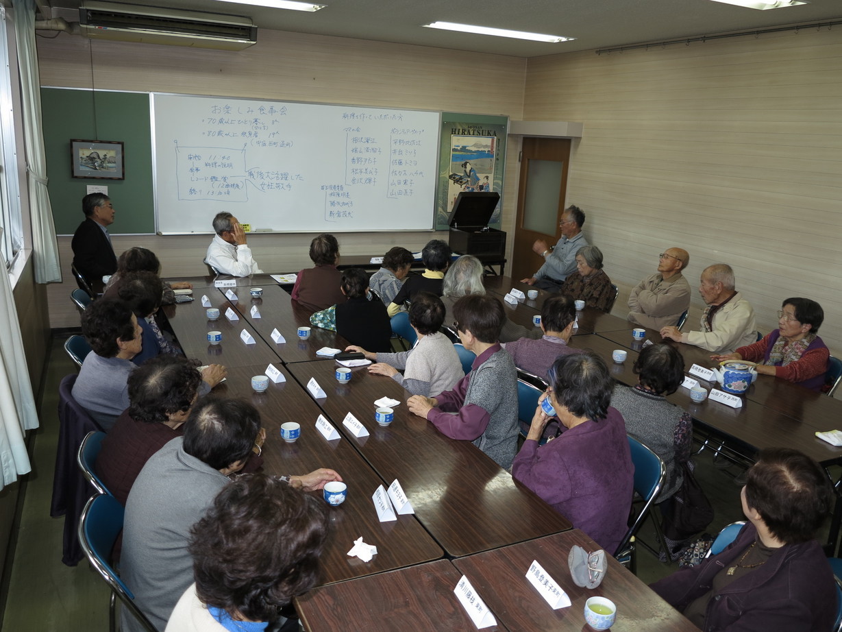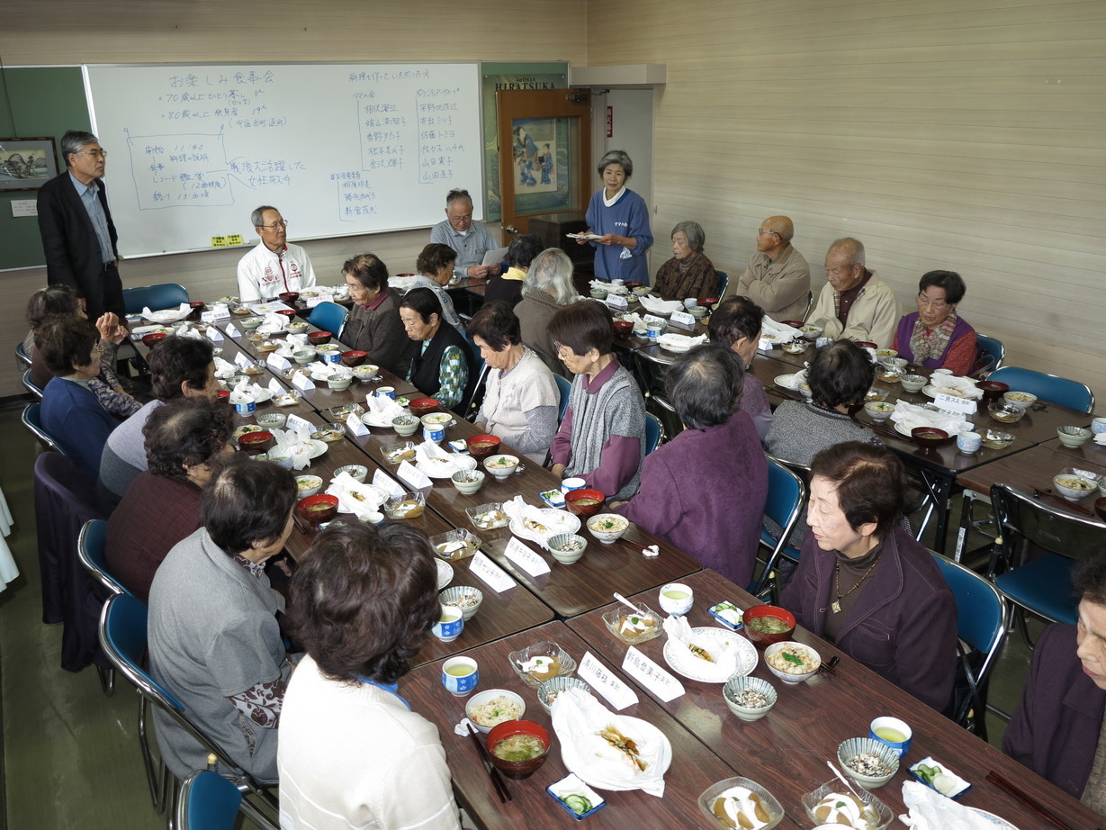 ・・・・・お楽しみ食事会・・・・ 四之宮地区社会福祉協議会 10月24日 木曜日 四之宮公民館で食事会が開かれました。台風27号が心配されましたが 皆さんしぽしぽ雨の中 徒歩や自転車で元気に いらっしゃいました。 ☆参加者は 70歳以上ひとり暮らしの方 8人 80歳以上で独身の方 16人 ☆協力してくださった方は ママの会(調理担当) 5人 ボランティアグループ 6人 社協理事・民生児童委員 7人 合計42人の参加者となり 中会議室のみでは 座りきれず別室に分か れて食事する盛況でした。 ★料理は「鮭のとろろ蒸し+和え物+おしんこ+味噌汁 +ごはん+リンゴ煮ヨーグルト和え」 鮭とろろ蒸しはじめ手作りの料理は大変おいしく大好評でした。 ★昼食後は「手回し蓄音機によるレコード鑑賞」で 戦後大活躍した女性 歌手 大津美子・島倉千代子・美空ひばりさん等12人の懐かしい歌声 で うっとりしたひと時でした。 ★ このレコード鑑賞は地元のレコード愛蔵家 福島さんのご好意によるも ので今日の席に合わせて福島さん自身が選曲して下さったものでした。 ★ 来月11月から来年2月までは ひとり暮らし高齢者(70歳以上)対象 の弁当宅配行事となります。 取材:社協広報部 |