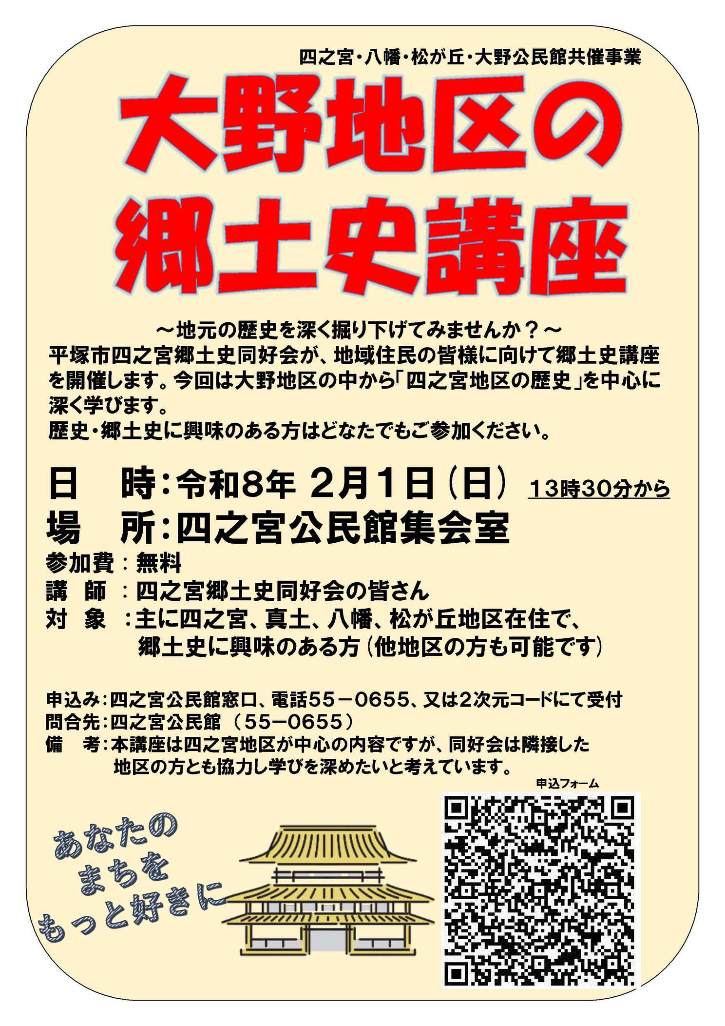 - 2026/01/26 歴史・郷土史に興味のある方へ!!2月1日の講座【あなたのまちをもっと好きに】