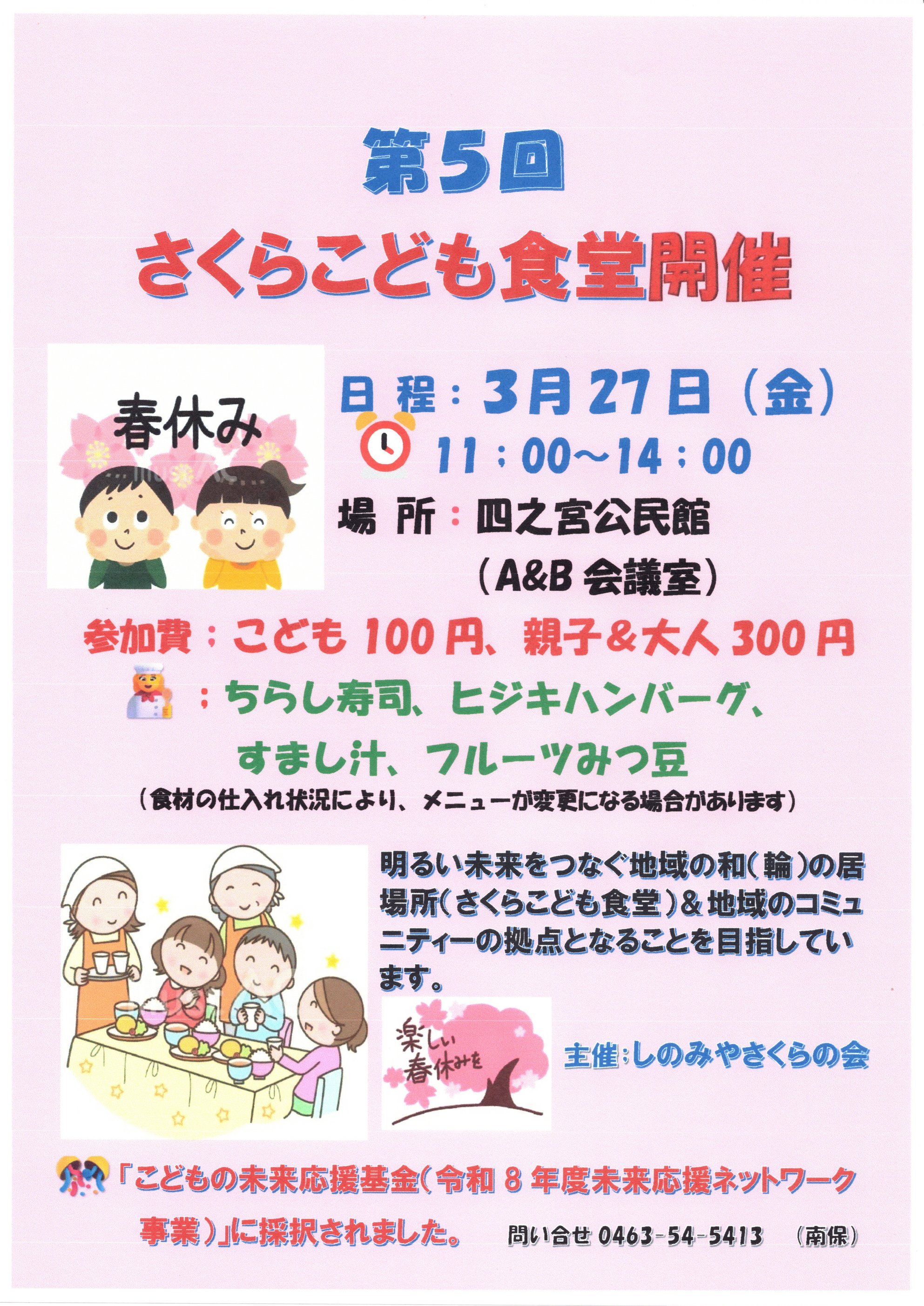 - 2026/02/01 第5回さくらこども食堂開催のお知らせ