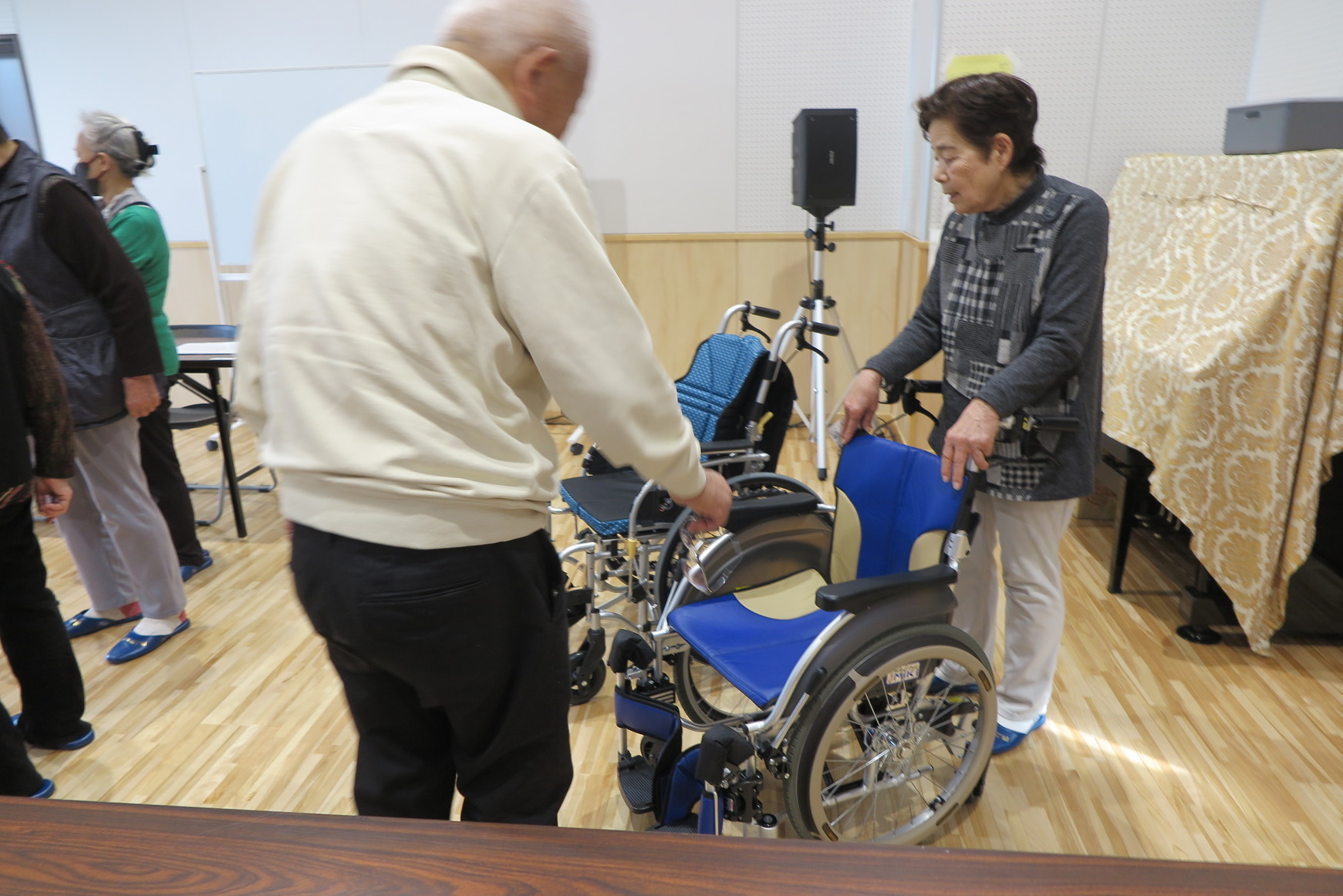 二見四之宮地区社協会長の開会の挨拶の後、高齢者よろず相談センター倉田会の新飯田さんより、健康体操の指導を頂き、その後介護用品の取り扱い業者の中村さんから、杖、歩行器(屋内用と屋外用の2種類)、自走式車椅子(2種類)の操作方法等について説明がありました。その後、両講師を交えて、介護用品や介護保険について質疑応答を行い、日頃の疑問を皆さんぶつけて、解消されているようでした。 残りの時間で、今回のメインイベントの脳トレにチャレンジしました。予め配布されたペーパーの問題5問に皆さん熱心に取り組まれ、脳の活性化が図られているようした。その内の一問『いくつあるかな』の三題は、与えられた平仮名やカタカナの文字群の中から同じ言葉を、縦・横・斜めに一直線に繋げて正解の数を選び出すもので、第二問はスリザーリンクというもので、初めて取り組む参加者が多く、司会者達の指導を受けながらも悪戦苦闘しておられるようでした。熱心に取り組まれた結果、残念ながら時間切れになる方も出ていました。 次回ふれあいサロンは、4月20日(月)13時より公民館にて、岡屋久美子先生による絵画教室『わくわくアート』の予定です。皆様こぞってご参加ください。 | |