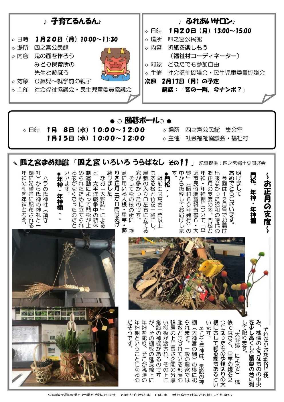 本号では、四之宮社協会長の年頭の挨拶、昨年行われました赤い羽根と歳末助け合い共同募金の結果とその御礼等、裏面に民生委員・児童委員の改選等の記事を記載してあります。