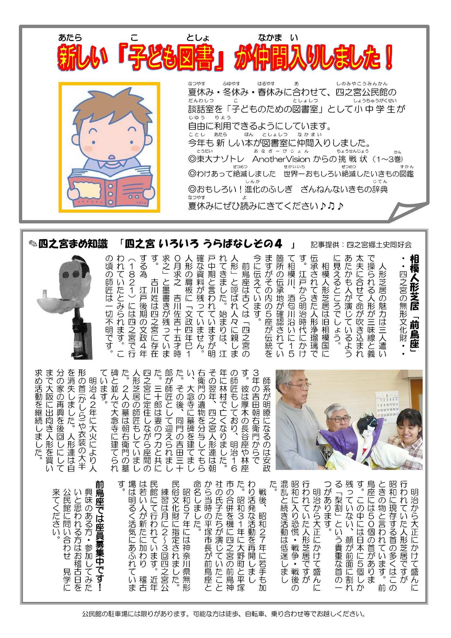 四之宮地区は市内の東縁を流れる相模川沿いで、前鳥神社を中心に栄えた地区でした。古代の相模国府域でもあります。無形文化財も多く、中でも人形浄瑠璃の前鳥座が大変有名です。