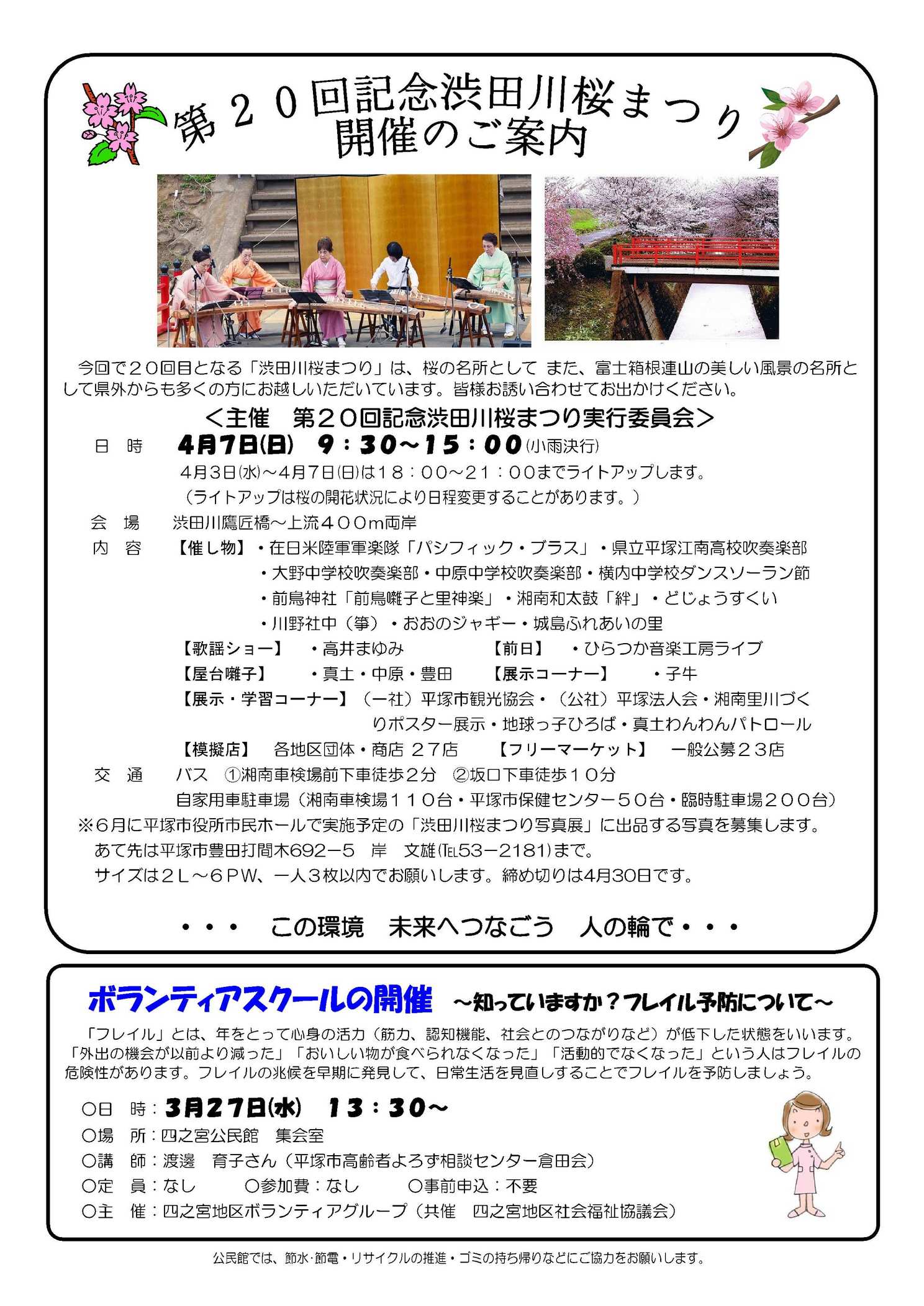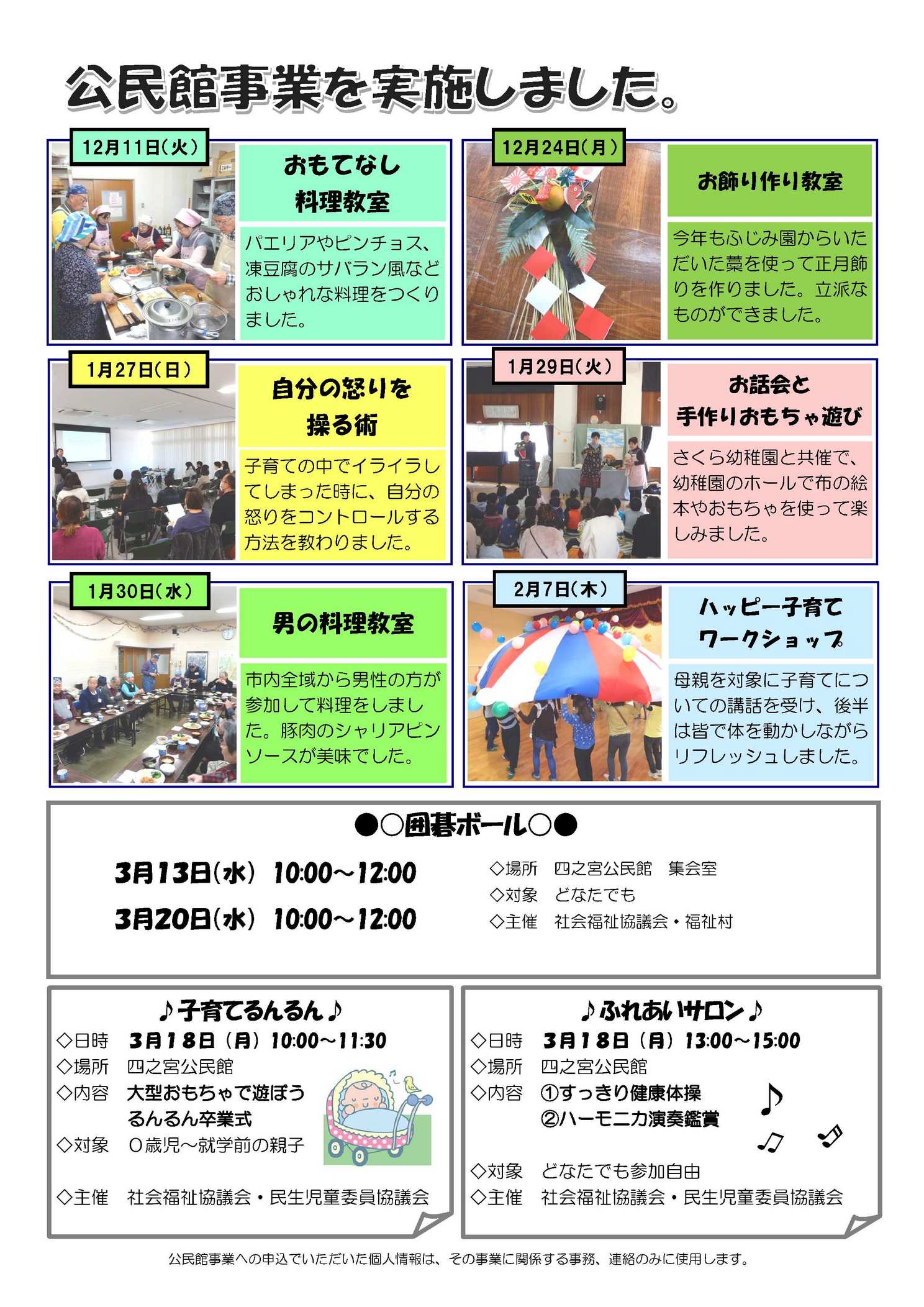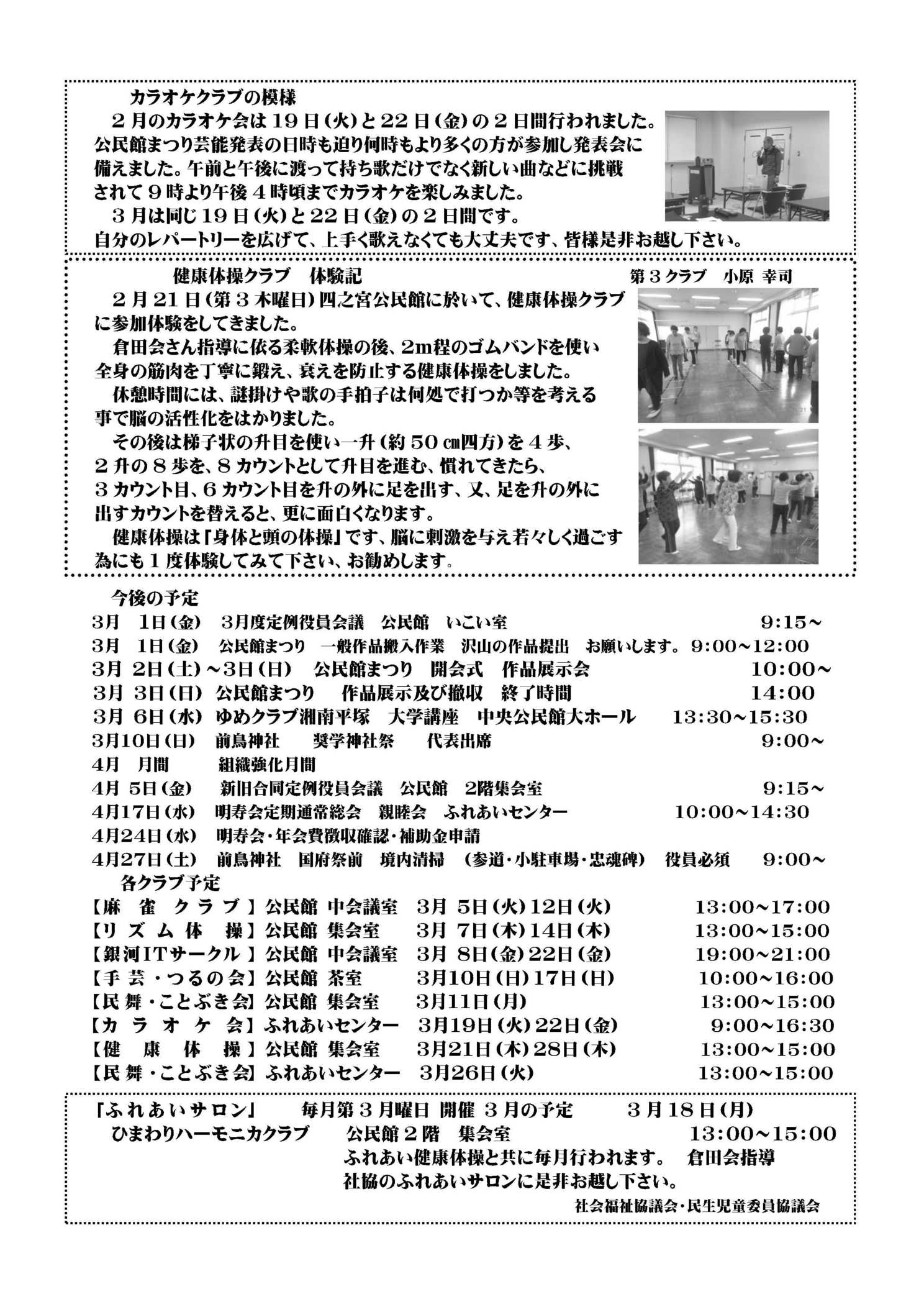 次回のふれあいサロンは、4月15日(月)13:00〜15:00公民館で開催予定です、皆様のご参加をお待ち申し上げております。 |