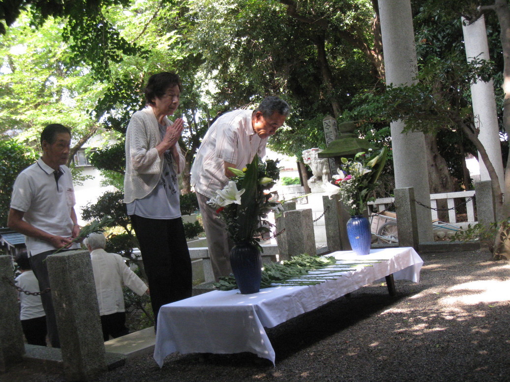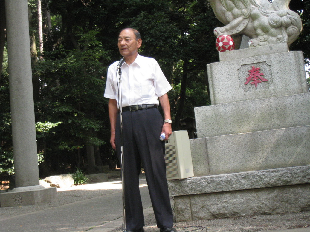 前鳥神社殉国碑の前で46名参加の基平和祈念祭が開催されました。 司会者あいさつで、70年前の終戦の時の思い出話しから始まり、 全員での黙祷・献花と粛々と予定通り行われました。 最後に主催者あいさつで、 平和の尊さ・世界規模での平和を維持することの難しさの話しがされました。だからこそ、一つの地域ではあるがこの四之宮の平和祈念祭の様な行事が必要である。今後も継続して行きたいと考えている。とのあいさつで終了しました。 いずれにしても平和を考える一日となりました。 |