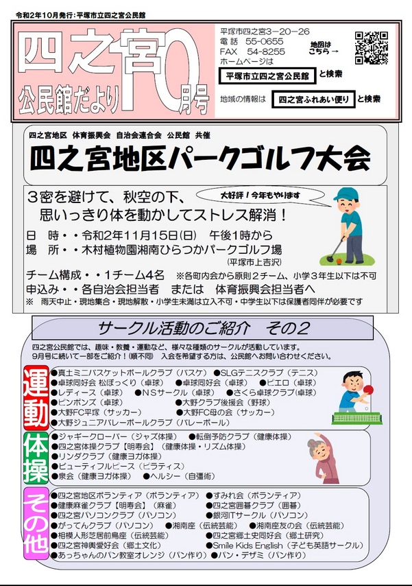10月19日(月) 13:00から15:00 公民館会議室 折り紙で楽しみましょう 体温37℃以上の人は、ご遠慮くださいね マスクを忘れずに御参加下さい 11月は大正琴の演奏を予定しています 不明な点は54-3757遠藤まで |