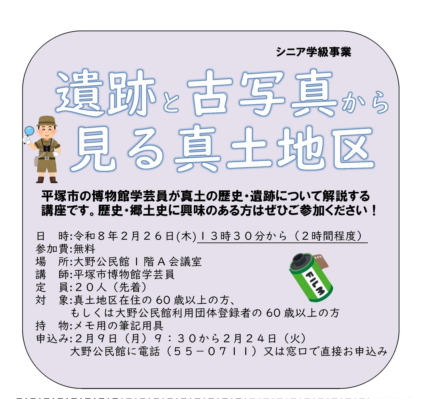- 2026/02/24 遺跡と古写真から見る真土地区(大野公民館シニア学級)開催せまる 2月26日(木)13:30〜 大野公民館 A会議室 1階