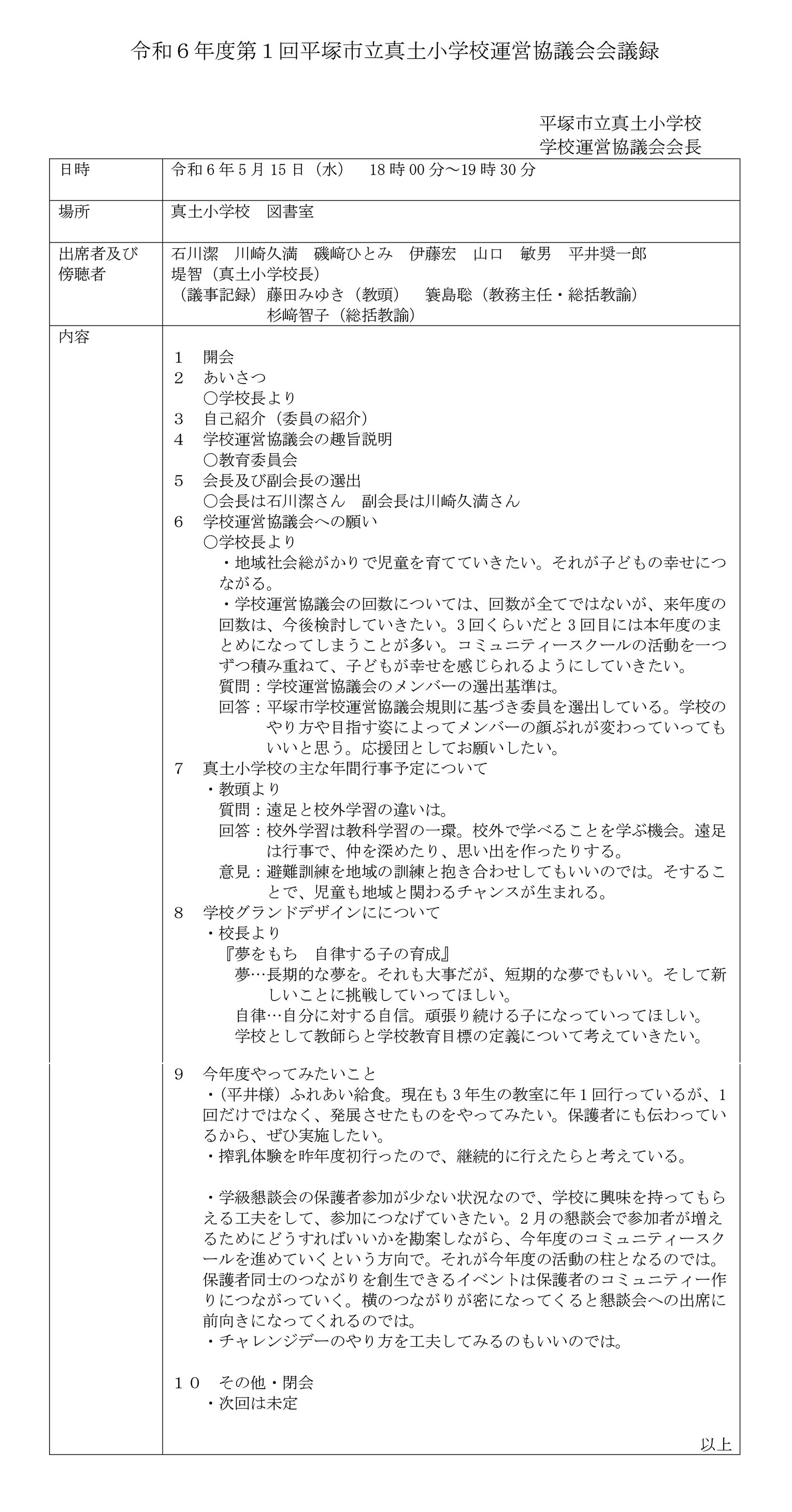 ■令和6年度第1回真土小学校 学校運営協議会議事録 ■ 令和6年5月15日(水)に、真土小学校図書室において、学校運営協議会が開催されました 議事録を掲載いたします コミュニティ・スクール(学校運営協議会制度)について 市ウェブサイトより 保護者や地域住民の意見を学校運営に反映し、地域とともにある学校づくりを実現するため、学校運営協議会制度を順次導入します。学校運営協議会を設置する学校をコミュニティ・スクールと呼びます。 (投稿:真土小学校ST 掲載:MT) 印刷や拡大表示に利用できます ↓ ↓ ↓ |