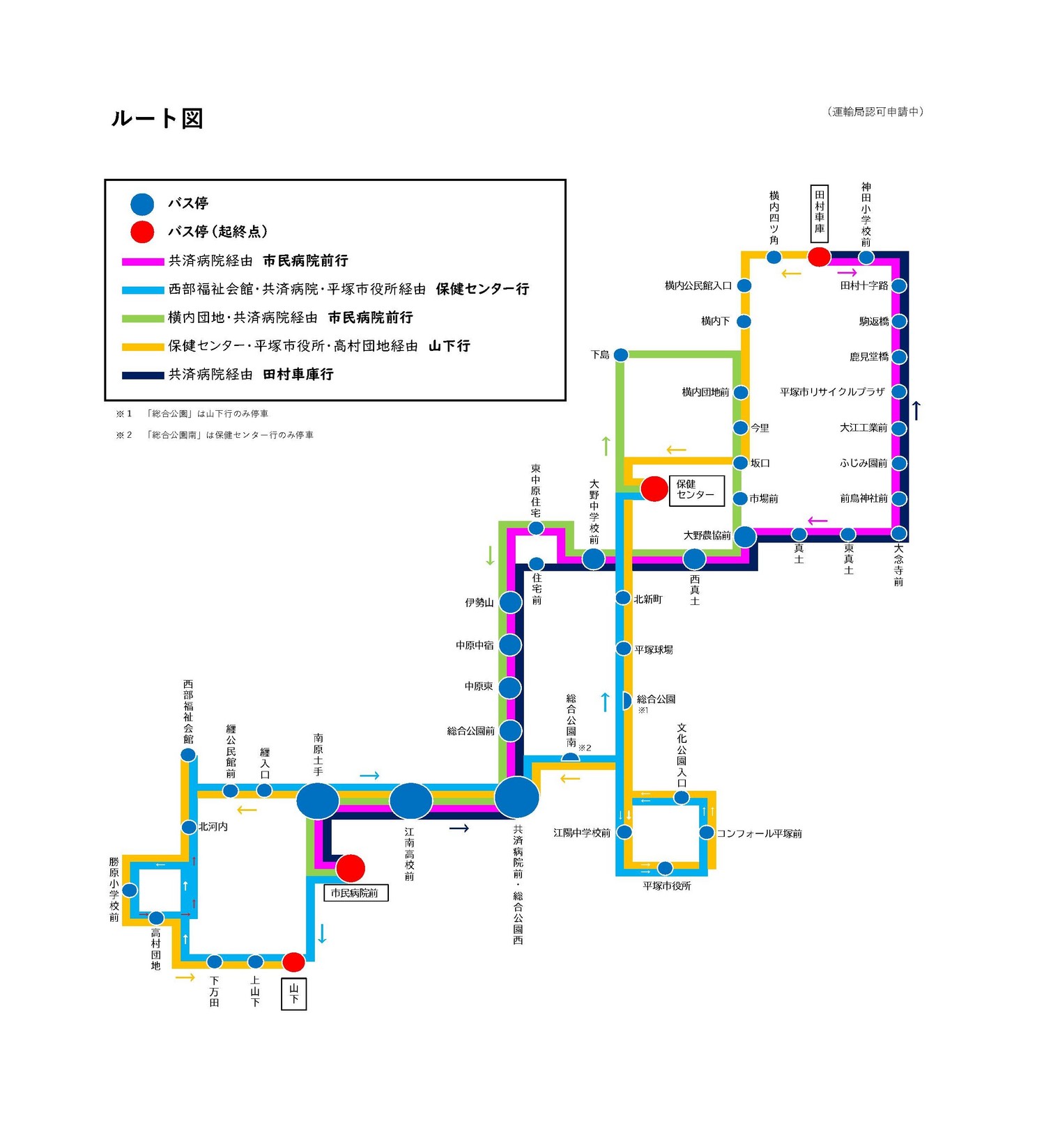 ■ 平塚市コミュニティバス betWEen liner(ビトウィーンライナー)」 ■ 令和7年(2025年)12月1日に運行を開始 シャトルバス(神田地区 〜 市民病院)は令和7年(2025年)11月28日(金曜日)にて運行を終了いたしました※ 下記のラインマーカの色はルート図における各系統を色別で表しています betWEen liner(ビトウィーンライナー)の概要 ┃ 真土地区には4系統が運行され、各系統1日1便です ┃ 平塚全地区では5系統が運行され、市民病院前発・西部福祉会館 ・共済病院・平塚市役所経由・保健センター行きは真土地区には運行されま せん こちらは1日2便です ┃ 共済病院前・総合公園西には全ルート停車 ┃ 市民病院前には田村車庫発→山下行き以外は停車 時刻表(真土地区の停留所) 上りは3系統で各1日1便 1.保健センター(発) 横内団地・共済病院経由 市民病院前行 今里 9:35 坂口 9:36 市場前 9:37 大野農協前 9:38 西真土 9:39 共済病院前・ 9:48 総合公園西 市民病院前(着)9:58 2.田村車庫(発) 共済病院経由 市民病院前行 東真土 7:27 真土 7:28 大野農協前 7:29 西真土 7:30 共済病院前・ 7:41 総合公園西 市民病院前(着)7:51 3.田村車庫(発) 保健センター・平塚市役所・高村団地経由 山下行 今里 12:49 坂口 12:50 平塚市役所 13:03 共済病院前・ 13:09 総合公園西 高村団地 13:27 山下(着) 13:31 下りは1系統で1日1便 4.市民病院前(発)共済病院経 田村車庫行 市民病院前(発)13:55 共済病院前・ 14:03 総合公園西 西真土 14:11 大野農協前 14:13 真土 14:14 東真土 14:15 (投稿掲載 情報局:MT) |