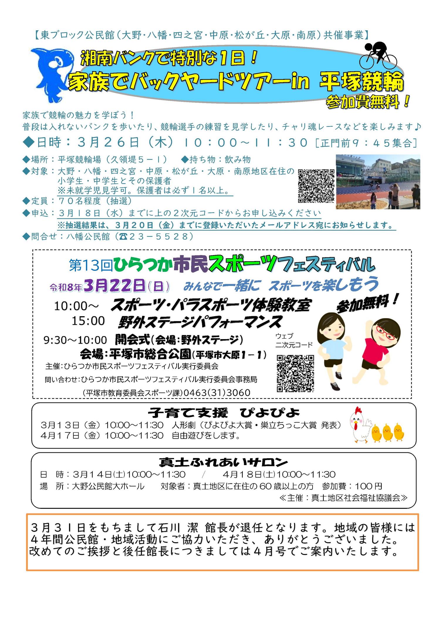 - 2026/03/06 □週刊イベント・会議カレンダー2026年3月2日(月)〜3月8日(日) 及 平塚市で行われる各種イベントへのリンク