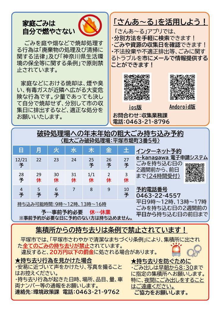 ■ 平塚市ごみ通信 第46号の発行 ■ 平塚市ではごみの状況をお知らせし、「ごみ減量・資源化」の大切さの理解を深め、推進していただくために、平塚市ごみ通信を発行しています (投稿 掲載:情報局YS) 印刷や拡大表示に利用できます |