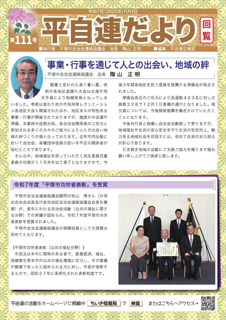 - ●平塚市自治会連絡協議会 平塚市発行の回覧板(月ごと)・定例役員会の報告・イベントの案内等